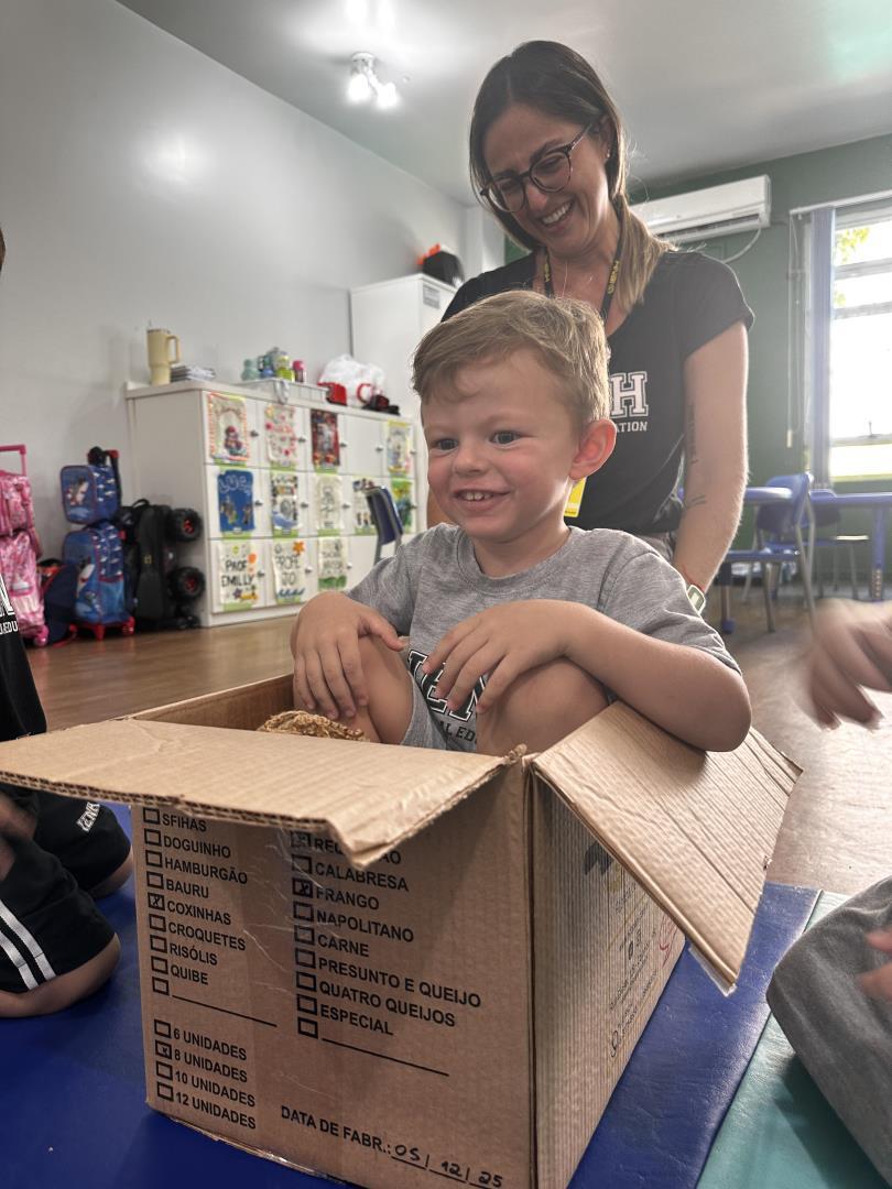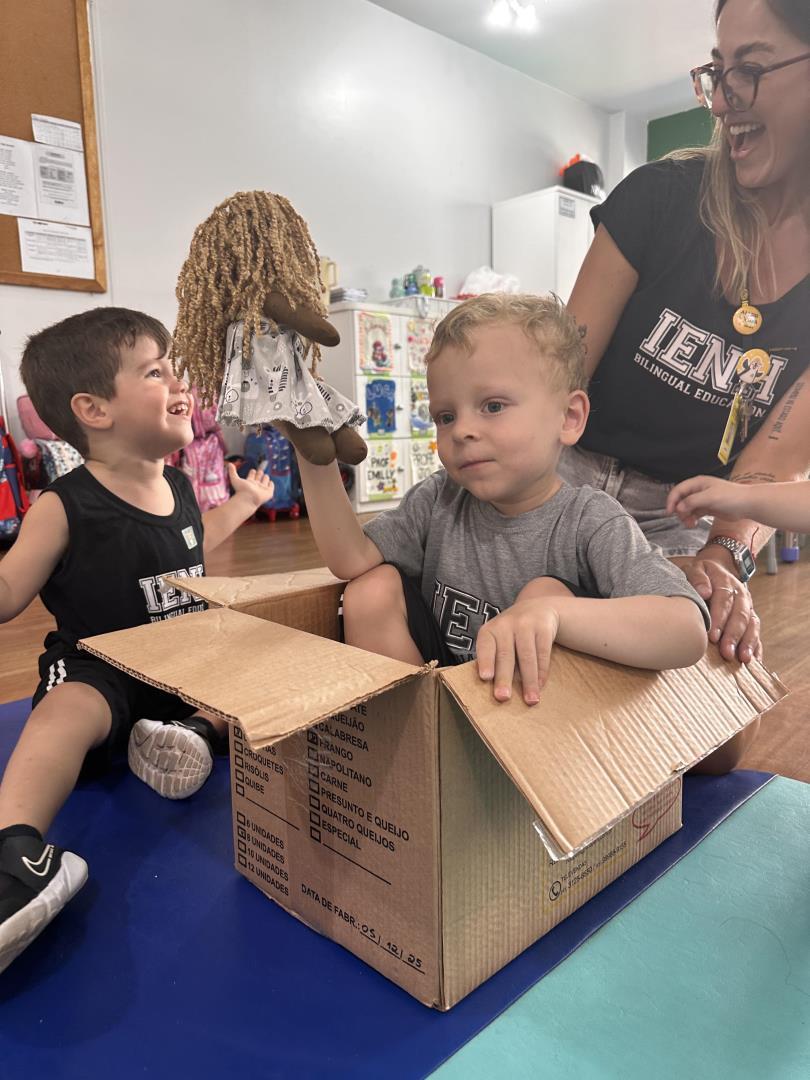 No dia seguinte, a experiência continuou de forma ainda mais interativa. Uma grande caixa de papelão, semelhante à utilizada pela personagem na história, foi levada para a turma. Dentro dela estava uma boneca representando Jéssica, que “apareceu” para convidar os colegas a brincar de se esconder, assim como acontece no final do livro. “As crianças participaram com entusiasmo e aproveitaram o momento de brincadeira e imaginação”, acrescenta a professora Joana Machado.