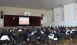 Durante a abertura, Fernanda e Rita fizeram um momento de sensibilização sobre a questão ambiental relacionada à geração dos resíduos e explicaram o conceito Lixo Zero. A dupla também expôs gráficos de resíduos gerados, em um período de duas semanas, pelas turmas envolvidas. Ainda houve um depoimento de uma ex-aluna participante do Projeto, a Pâmela Broilo, que disse “parecer difícil no início”, mas que se torna um hábito que é levado para fora do ambiente escolar também.