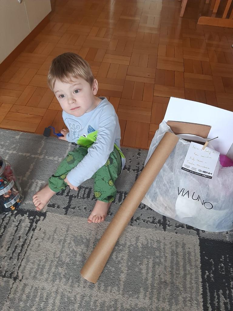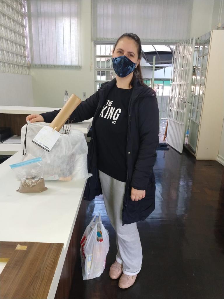 Além da areia, as Professoras Lúcia Persch e Cláudia Nis organizaram uma sacola com diferentes tipos de materiais, como folhas A3, papel pardo e diversas sucatas para exploração e utilização em atividades que serão propostas no decorrer do semestre.