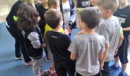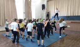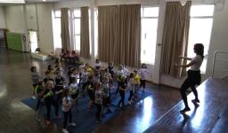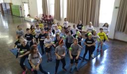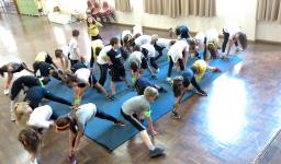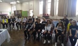 Divididos em grupos, os estudantes alongarem-se a partir das orientações da Professora – Daiane Pedreira, que também realizou uma aula de dança com as turmas.
