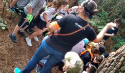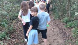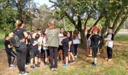 Em seguida, as turmas visitaram o Parcão, onde foram recebidas pelas Professoras responsáveis pelo local – Claudia e Adriana. No espaço, realizaram uma trilha guiada e um piquenique saudável.