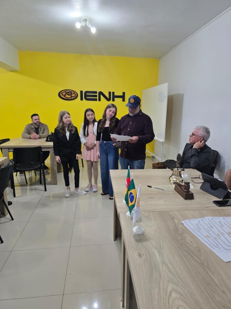 Além da premiação dos estudantes, a reunião também contou com a homenagem a patrocinadores que apoiam as atividades do Rotary, onde o coordenador de Gestão da IENH, Antônio Guimarães representou a Instituição.