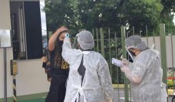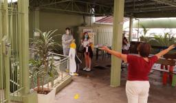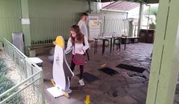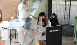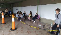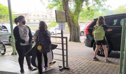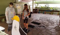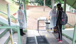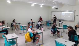 Seguindo os protocolos, os estudantes chegaram em horários escalonados. Na entrada para as Unidades, responderam um questionário, passaram pela aferição da temperatura e higienização dos calçados e das mãos.