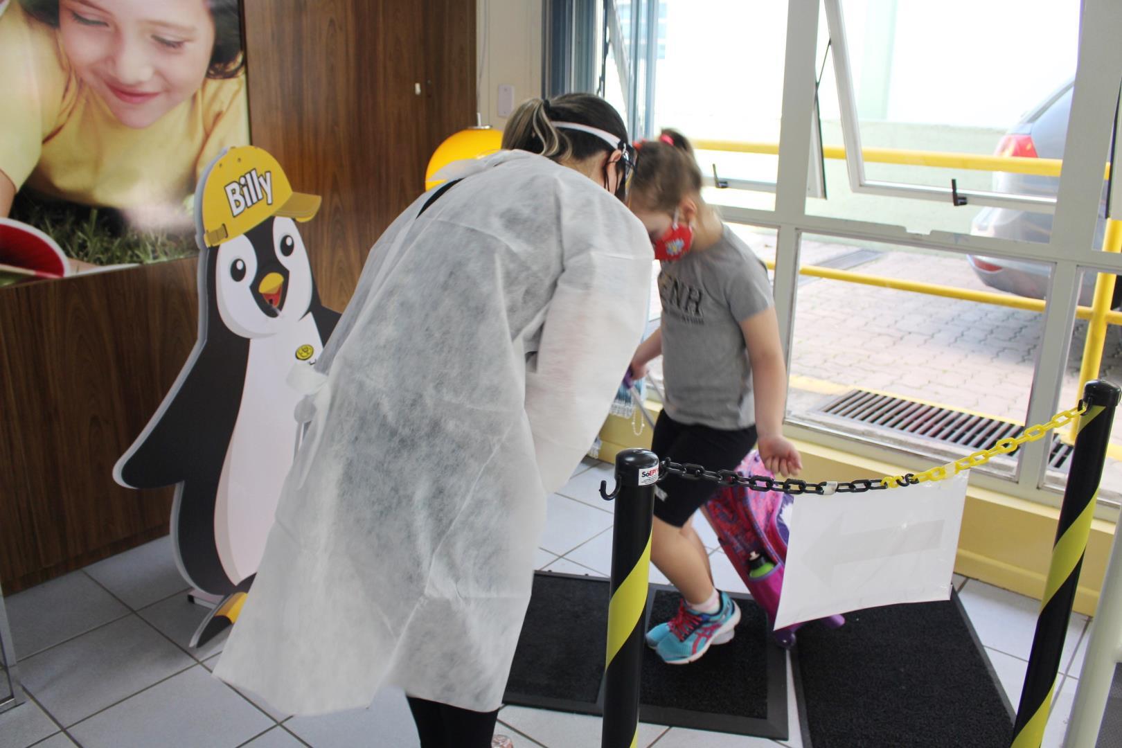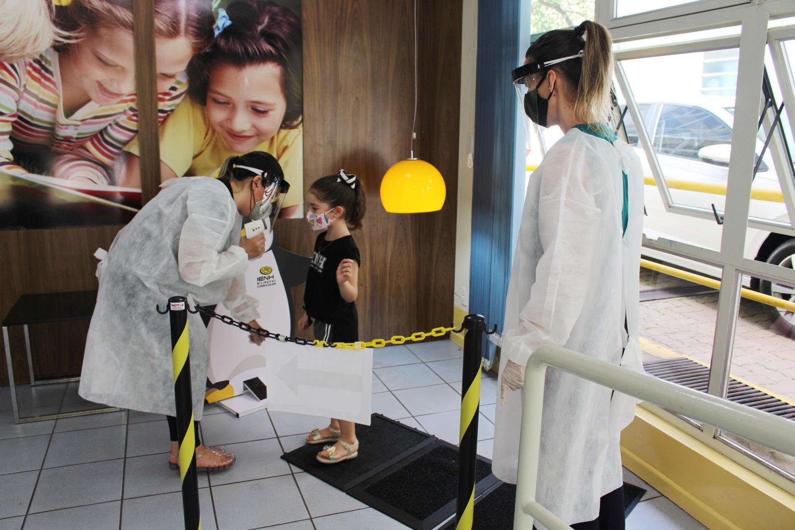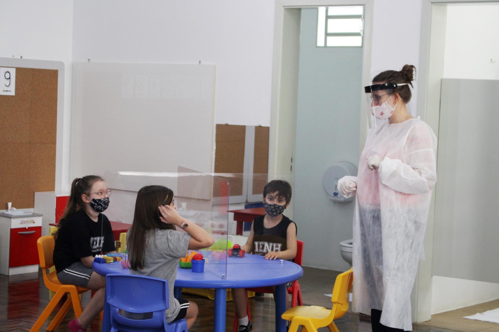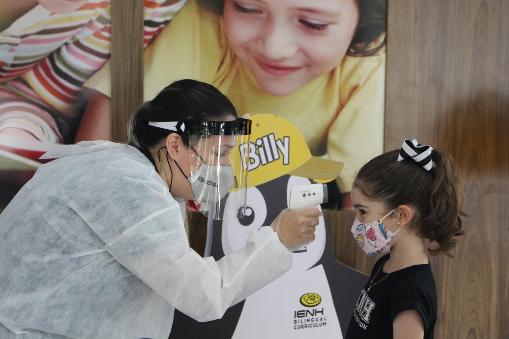 As escolas receberam os estudantes com todos os cuidados necessários para prevenção ao novo coronavírus. Utilizando suas máscaras, todos passaram pelo espaço de triagem, em que higienizaram as mãos com álcool em gel e os sapatos no tapete sanitizante, além de realizarem a aferição da temperatura. Na sala de aula, mesas, cadeiras e brinquedos foram organizados de acordo com as orientações dos órgãos de saúde, respeitando o distanciamento social.