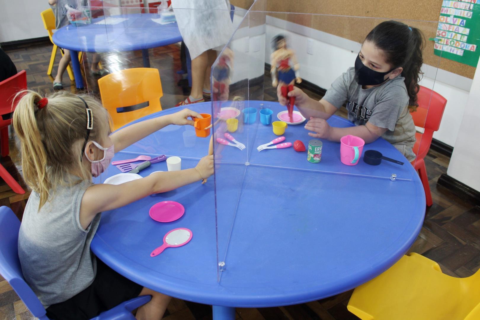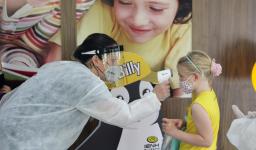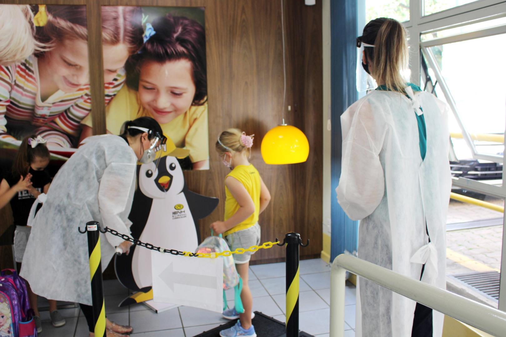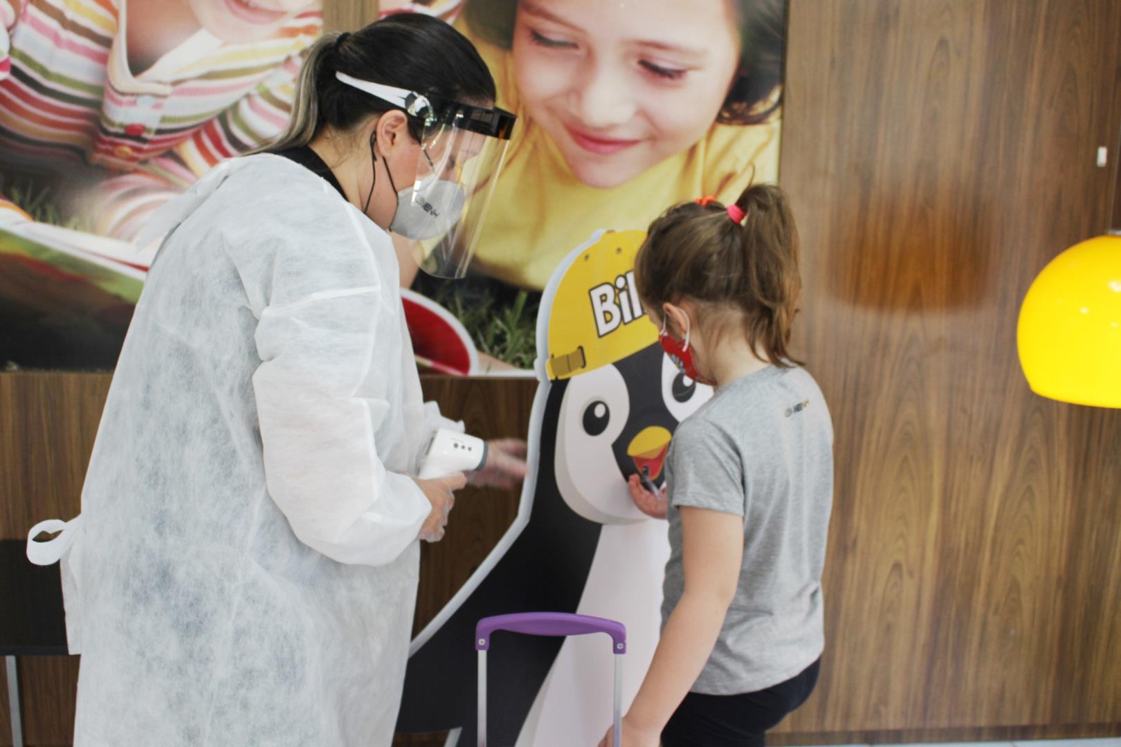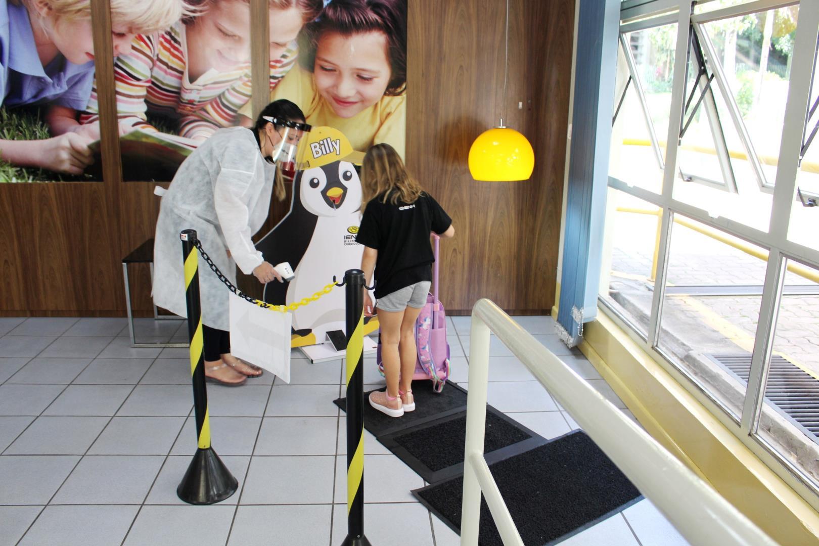 As escolas receberam os estudantes com todos os cuidados necessários para prevenção ao novo coronavírus. Utilizando suas máscaras, todos passaram pelo espaço de triagem, em que higienizaram as mãos com álcool em gel e os sapatos no tapete sanitizante, além de realizarem a aferição da temperatura. Na sala de aula, mesas, cadeiras e brinquedos foram organizados de acordo com as orientações dos órgãos de saúde, respeitando o distanciamento social.