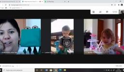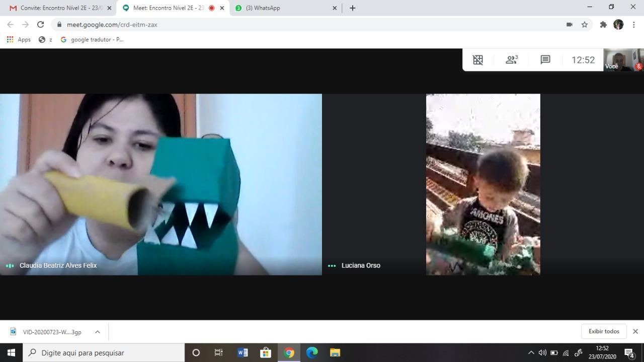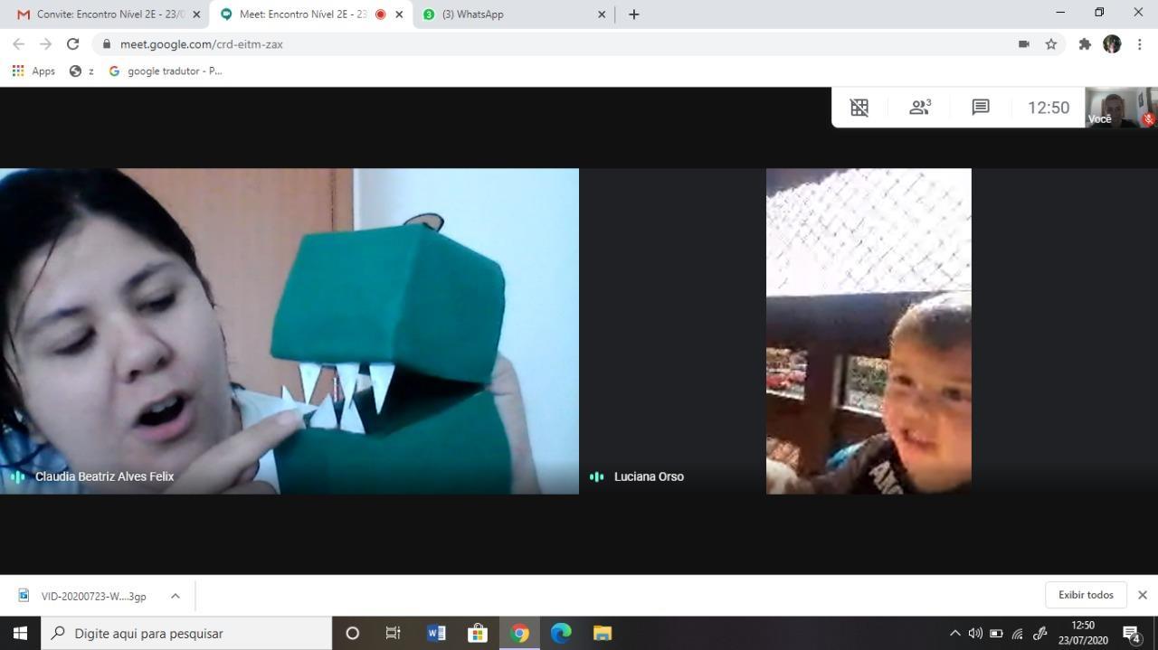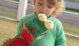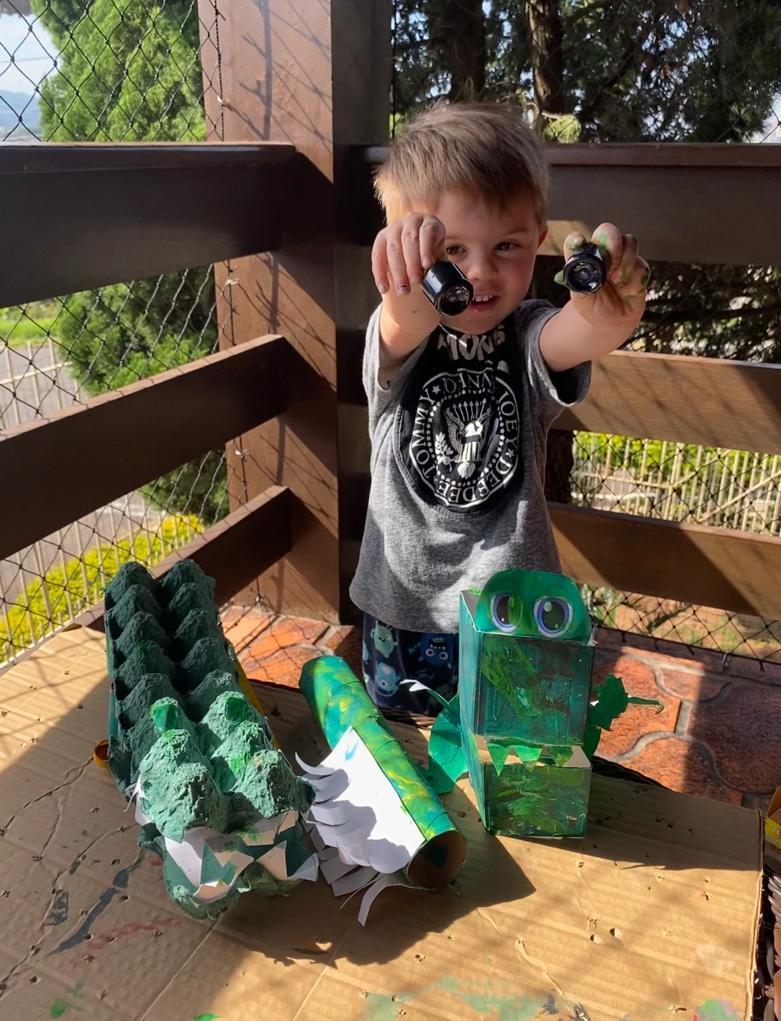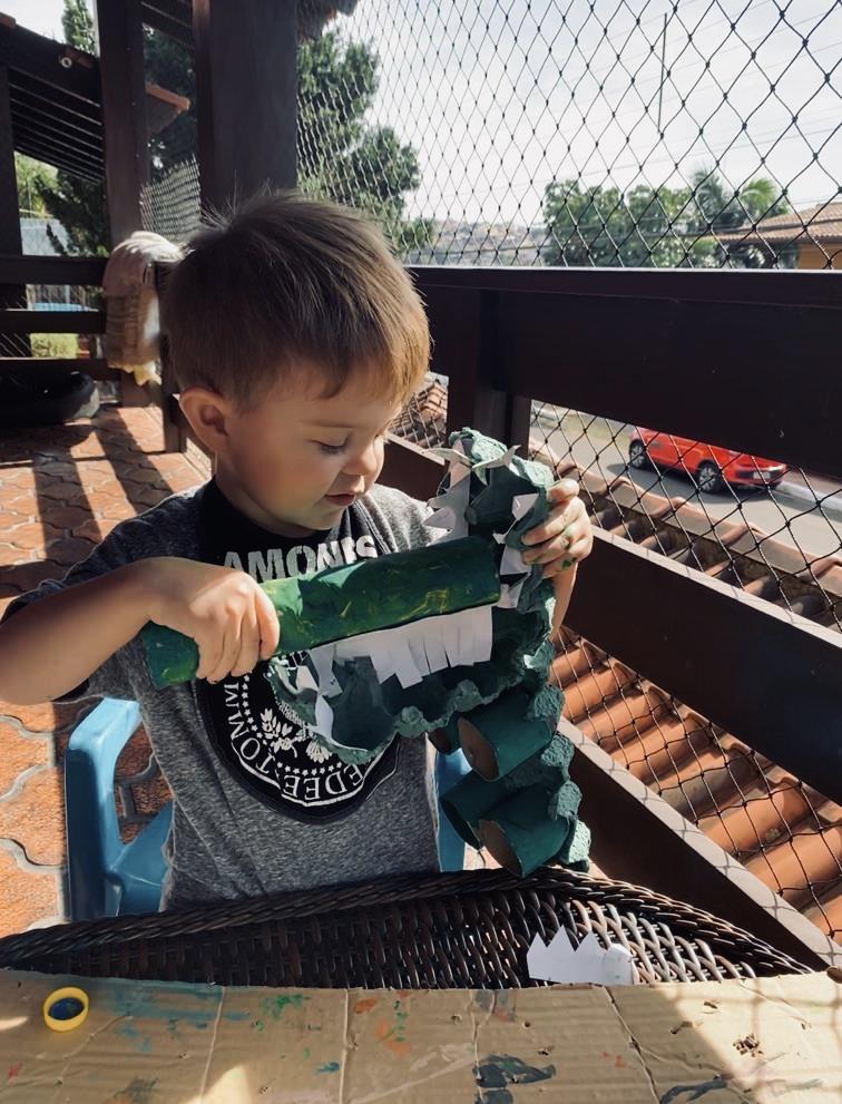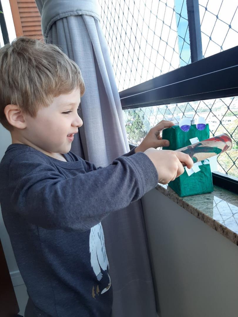 A partir da história contada na Língua Materna, as crianças confeccionaram uma escova de dentes para escovar os dentes do jacaré. E então as Teachers Claudia Felix e Damodara Ferrer ensinaram uma canção sobre escovar os dentes, tornando a proposta ainda mais divertida.