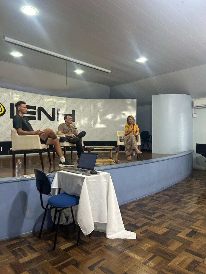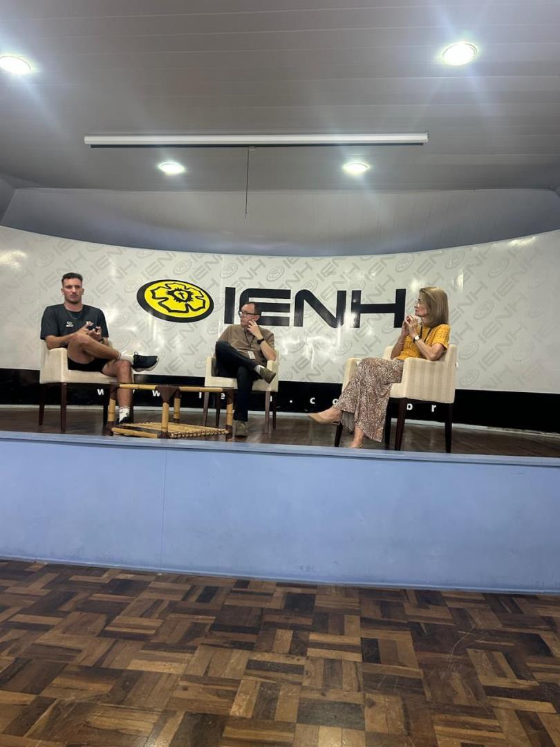 A atividade transformou a Sala de Conferências em um espaço de escuta e troca. Para enriquecer o diálogo, contribuíram o professor Marcelo Vier, a coordenadora do Programa Socioambiental da IENH, Isabel Lizakoski e o auxiliar de Desenvolvimento Escolar Arthur Klein, que trouxe ao debate sua vivência como treinador.