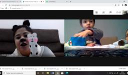 A partir do diálogo sobre o habitat do amigo Billy, as Teachers Claudia Felix e Damodara Ferrer falaram de outro amigo na aula, que mora em um lugar muito gelado assim como os pinguins, o urso polar! Na atividade proposta em seguida, as crianças confeccionaram ursos polares com materiais recicláveis e fizeram experiências de congelar a água, explorar o gelo e depois quebrá-lo.