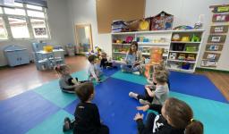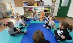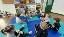 Primeiramente, as crianças descobriram qual animal seria o protagonista da história, decifrando o mistério de qual era o som que vinha da “Surprise Box”, tarefa importante para o desenvolvimento da consciência dos sons. Então, a narrativa foi contada às crianças com o livro e, em outros momentos, o livro foi usado juntamente com caixas com gatos e um cachorro empilhadas, as mesmas utilizadas em Língua Materna para narrar “A Casa Sonolenta” de forma a conectar as duas histórias, as duas propostas e as duas línguas.