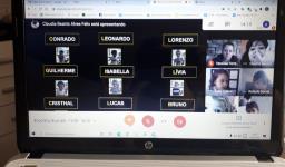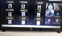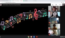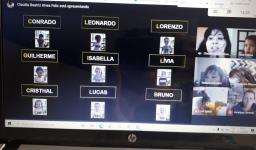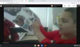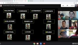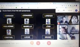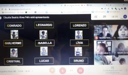 Conforme Cláudia, o objetivo do momento é “desenvolver e praticar a oralidade em inglês através de interações com os colegas e apresentações de propostas assíncronas”.