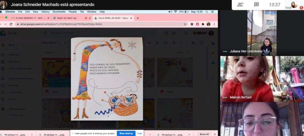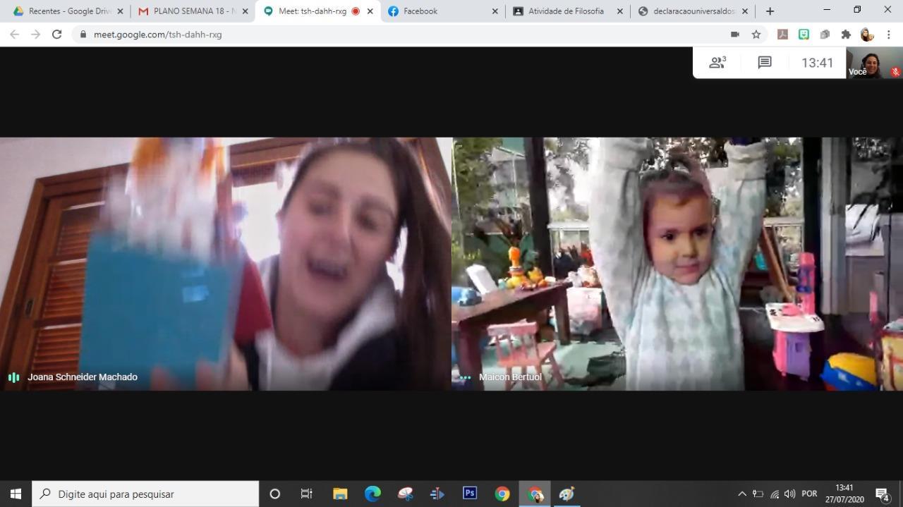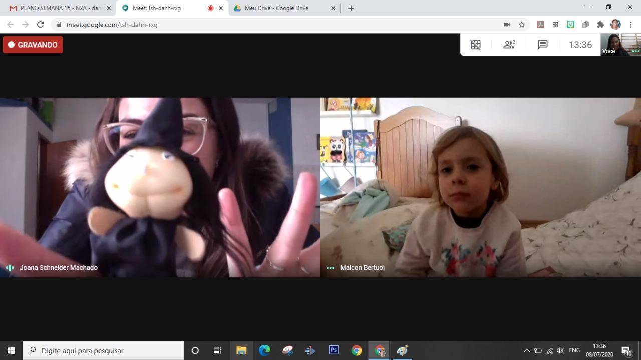 No projeto estão sendo propostas atividades que sejam próprias do mundo lúdico da criança, considerando as suas peculiaridades e singularidades, contribuindo para a formação da identidade respeitando valores éticos necessários para a vida de cada sujeito. Também acompanham as tarefas os professores Giseli e Gustavo.