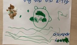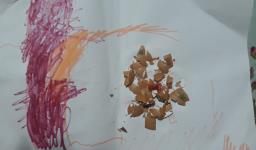 Muitas descobertas foram feitas através da audiência de vídeos, explorações nos momentos on-line com jogos e imagens, além da criação de um cartão do dia dos pais utilizando uma técnica de colagem com casca de ovos.