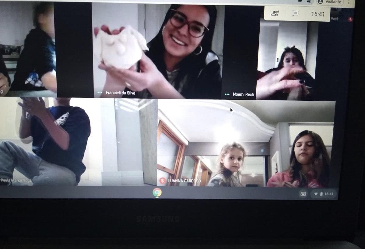 Nas duas últimas semanas, as crianças realizaram pesquisas, histórias e vivências sobre a coruja. Para finalizar o estudo sobre este animal, na quarta-feira, dia 29 de julho, participaram de uma vivência on-line muito criativa. Os estudantes prepararam massinha de modelar branca, com a qual confeccionaram a coruja das neves, espécie estudada e pesquisada pelas turmas. “Foi um momento muito prazeroso e divertido, que as crianças adoraram participar, comenta a Professora Amanda Siebel. Além dela, também participaram do momento as Professoras Letícia e Francieli.