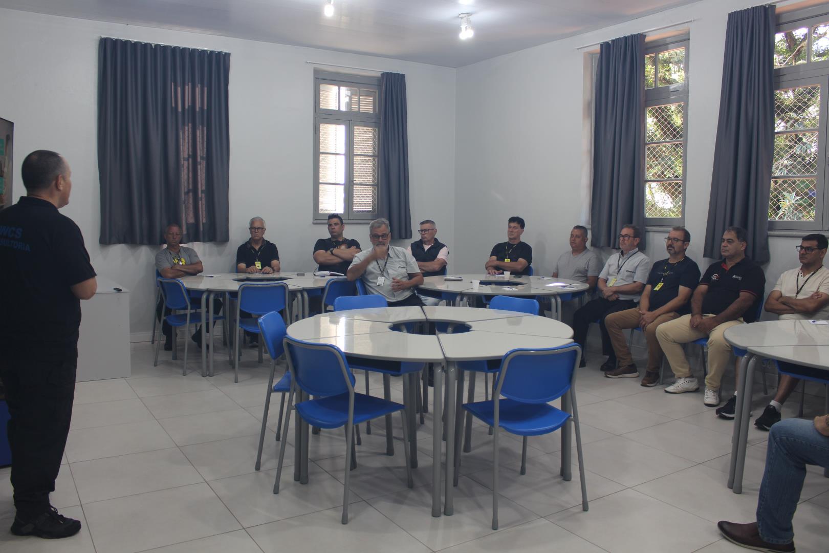 O treinamento foi ministrado pela WCS Consultoria e Treinamento em Segurança e abordou temas fundamentais para a rotina das equipes, como protocolos de entrada e saída, identificação de visitantes, organização dos fluxos internos e o papel do atendimento atento e responsável na proteção da comunidade escolar
