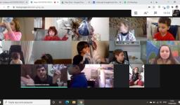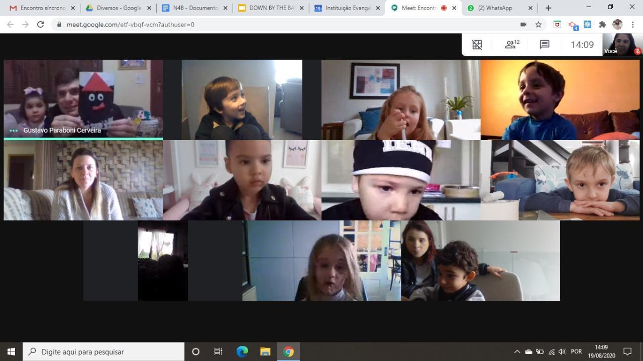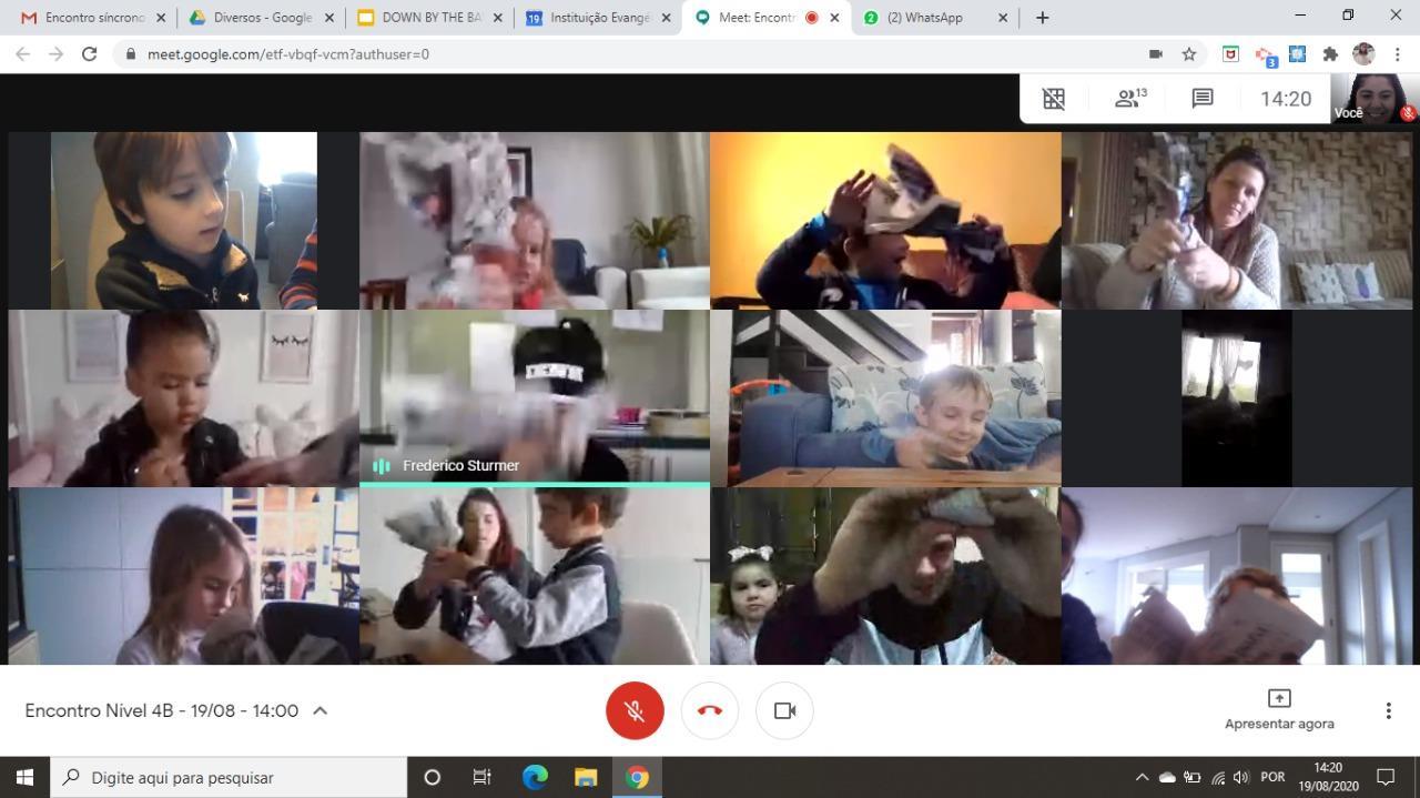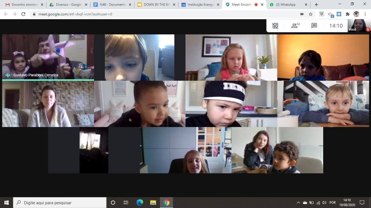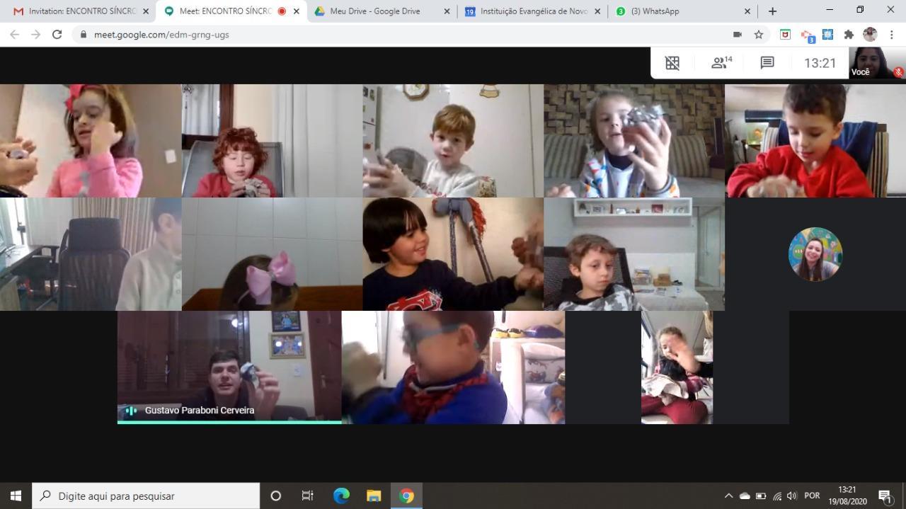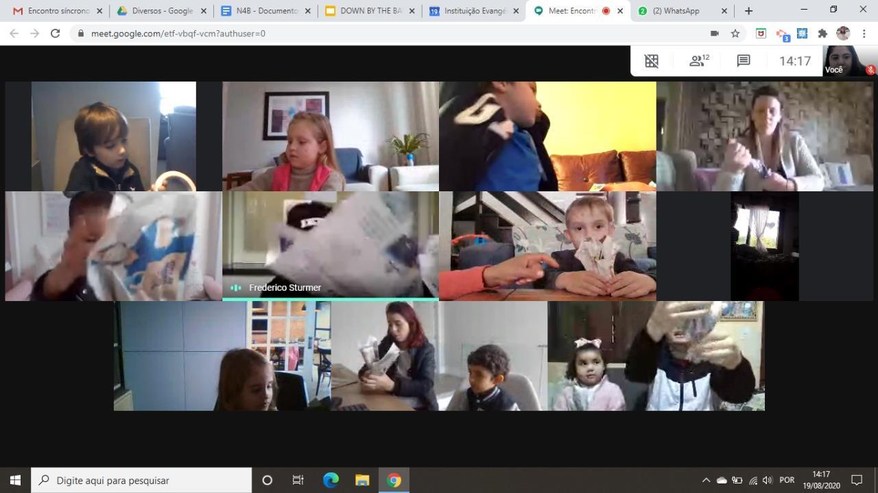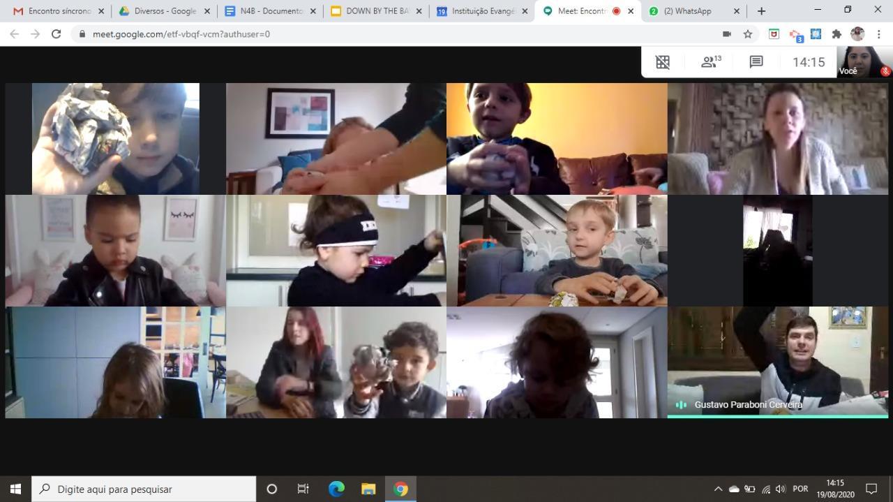 No encontro síncrono, ele explicou o que é folclore e mostrou brinquedos típicos como peão, bola de meia, catavento, cavalinho de pau e bilboquê. As crianças também confeccionaram petecas de jornal com as instruções do professor, e puderam jogar com as famílias. “Foi um momento muito significativo e divertido”, comenta a Professora Cláudia Felix.