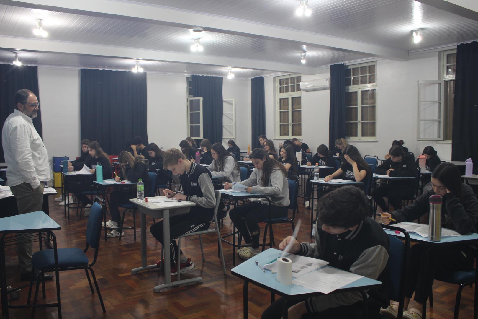 Os alunos da 2ª série realizaram o primeiro simulado, com foco em compreensão auditiva e de leitura, habilidades essenciais para o exame. Já as turmas da 3ª série participaram do segundo simulado, voltado à produção escrita em Língua Espanhola.