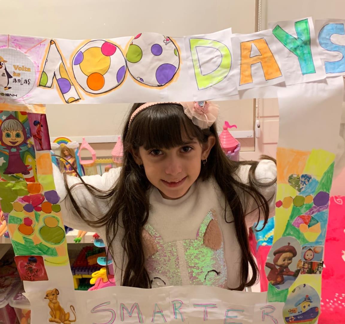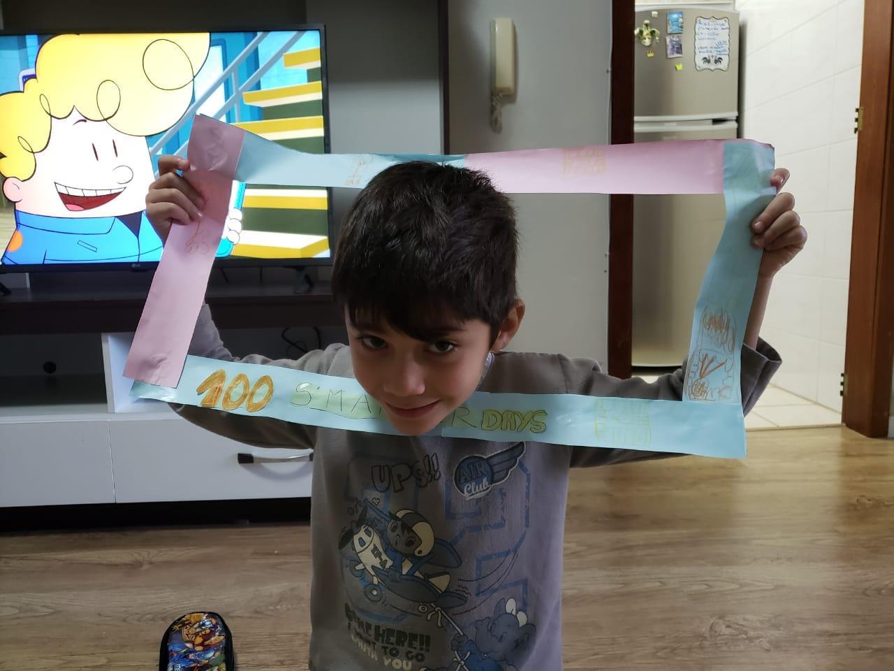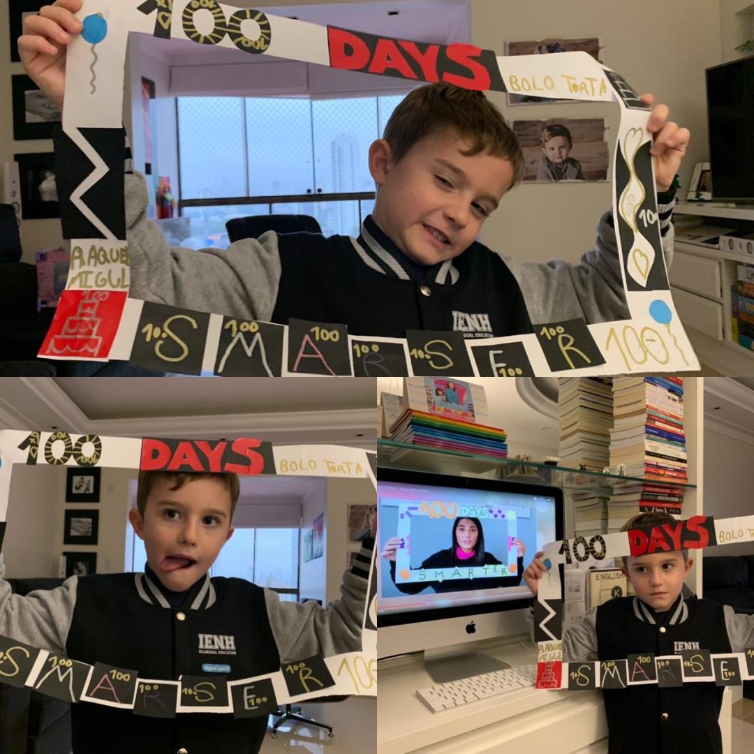 Com as aulas remotas, os estudantes dos 1ºs anos do Ensino Fundamental Bilíngue da IENH – Unidade Oswaldo Cruz celebraram os “100 days smarter” - que em português significa “100 dias mais inteligentes”. Ainda que fora da escola, a Teacher Vitória Bossle e as Professoras Isamara Nunes, Sheila Gallina e Samanta Castro propuseram diversas atividades envolvendo o numeral 100, trabalhando vocabulário e matemática.