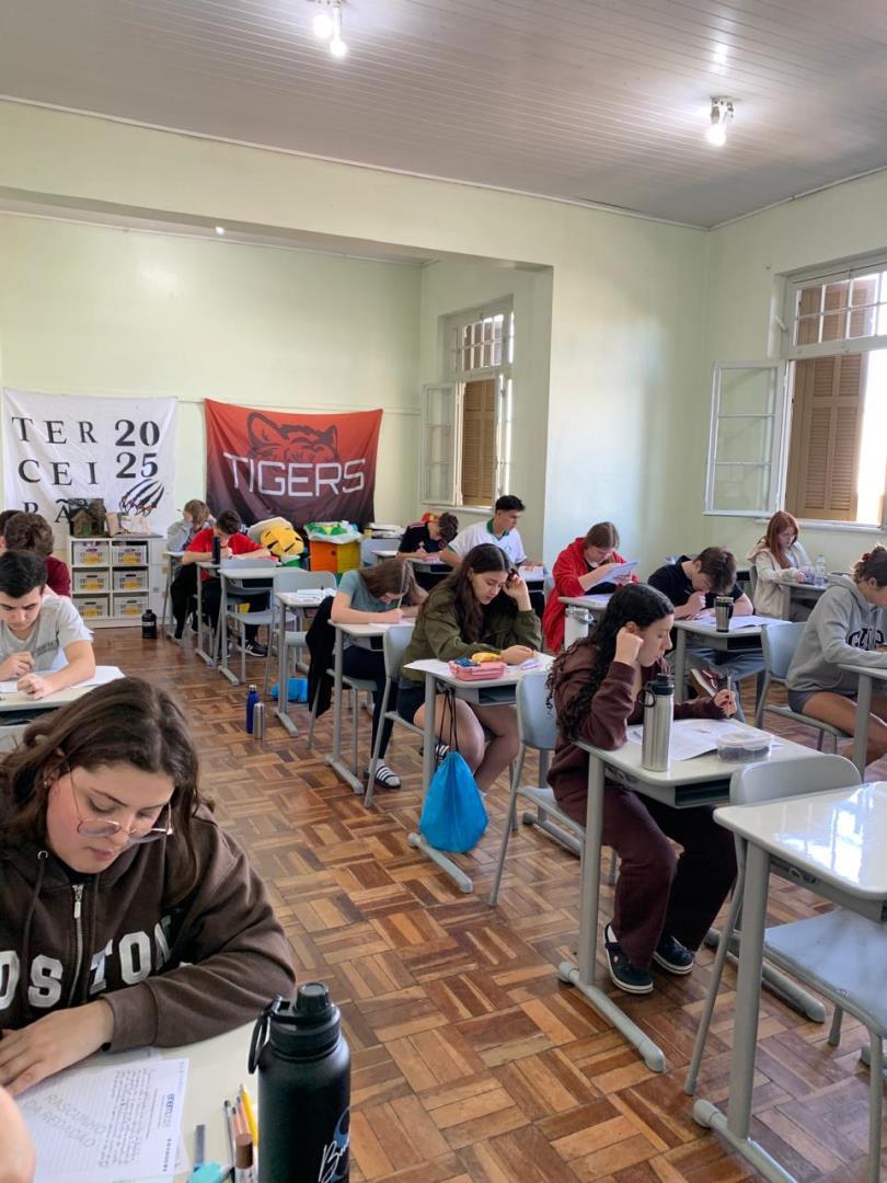 Nesta primeira etapa, os alunos responderam às provas de Linguagens, Códigos e suas Tecnologias e de Redação, além da avaliação de Ciências Humanas e suas Tecnologias. O exercício teve como objetivo aproximar os jovens da experiência real do ENEM, auxiliando no desenvolvimento de estratégias de tempo, organização e resolução das questões.