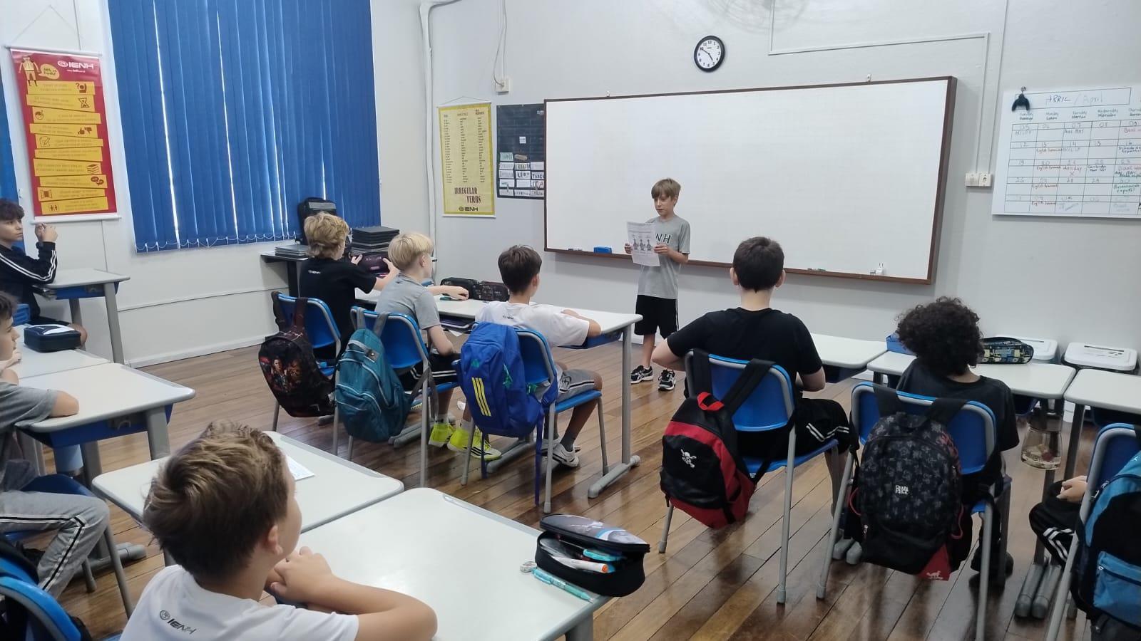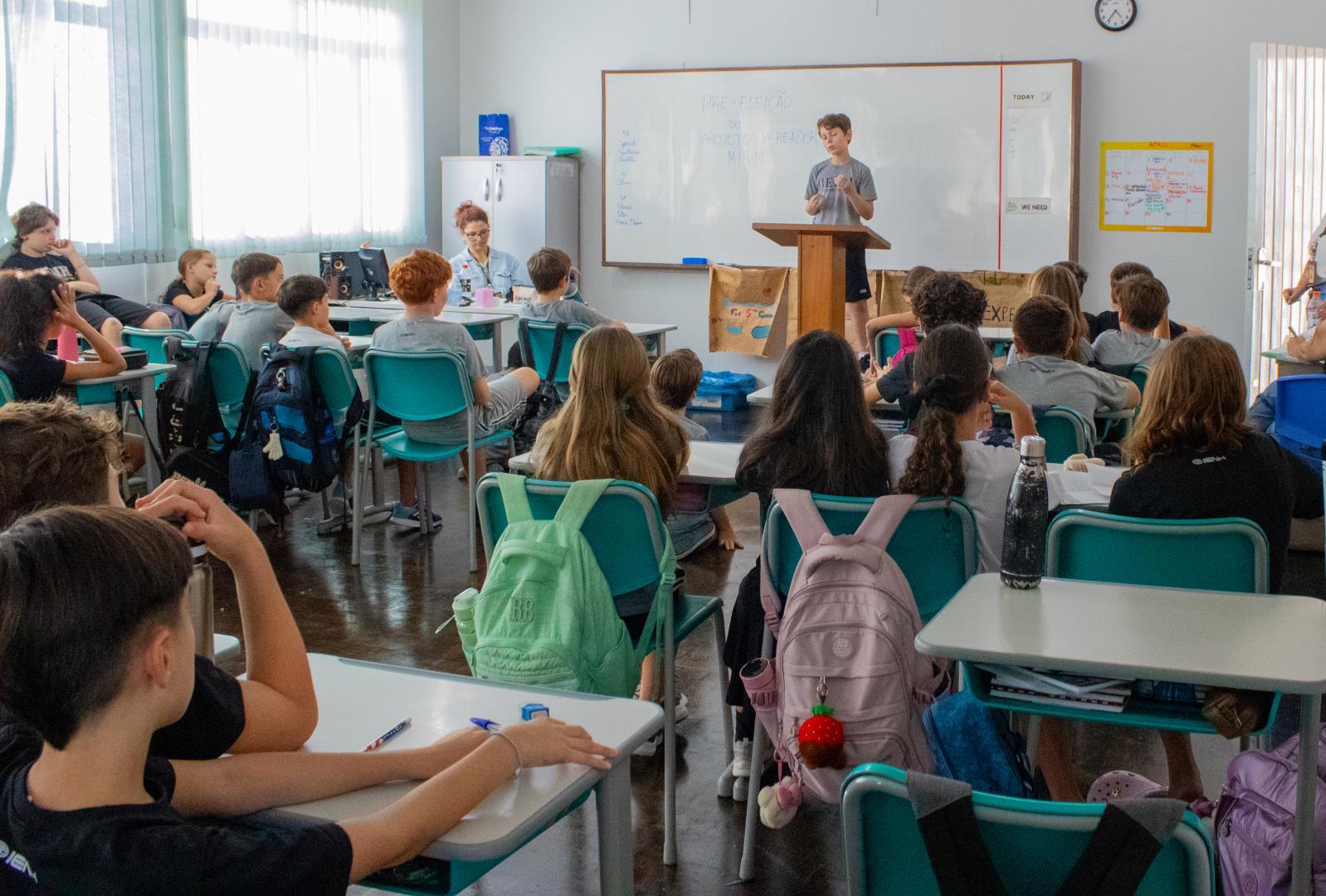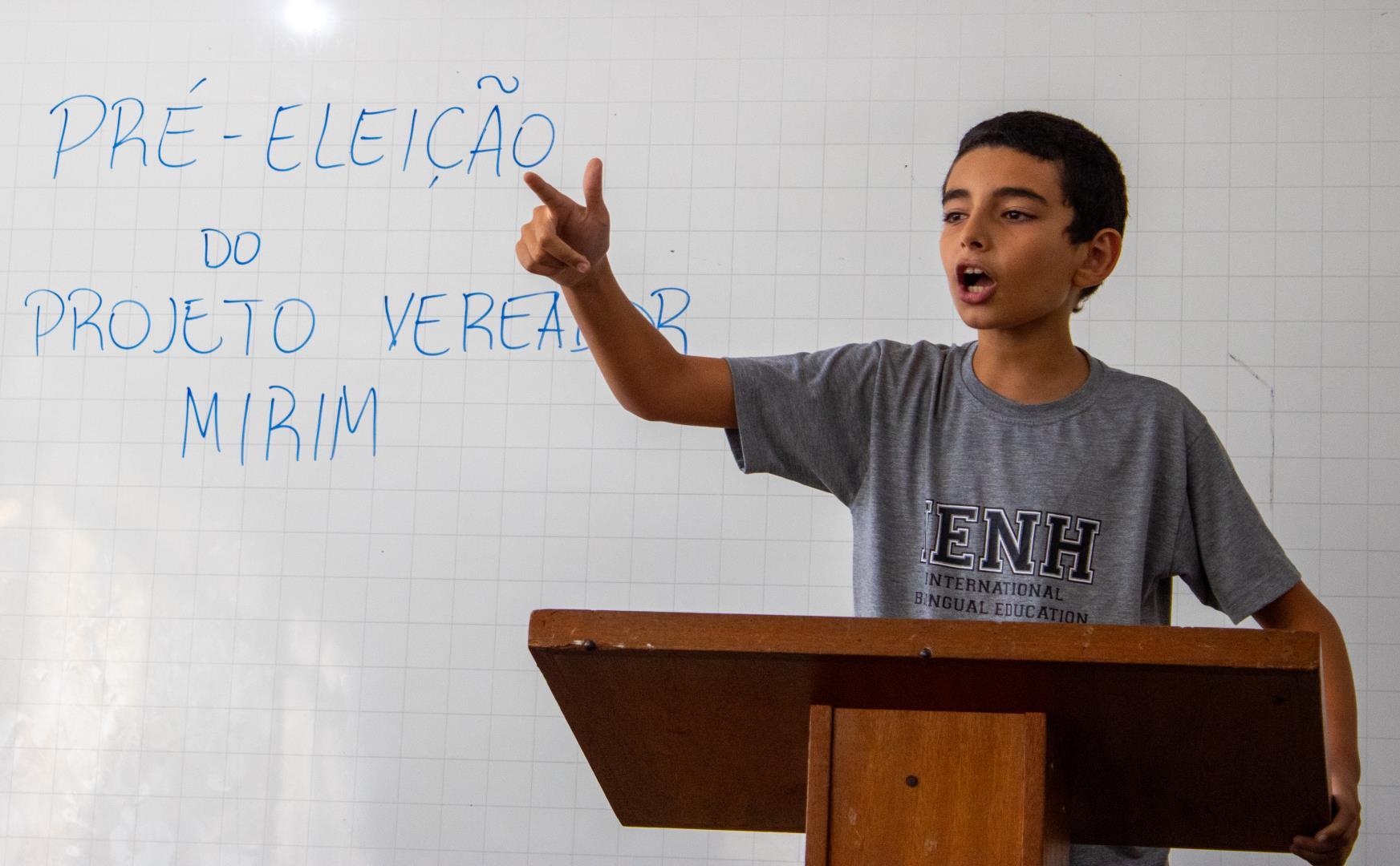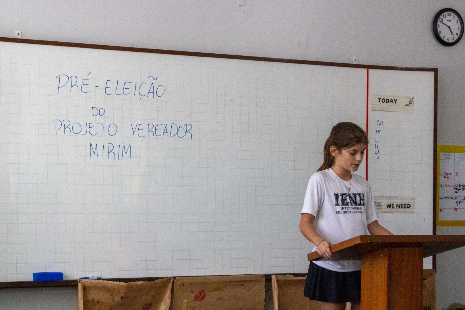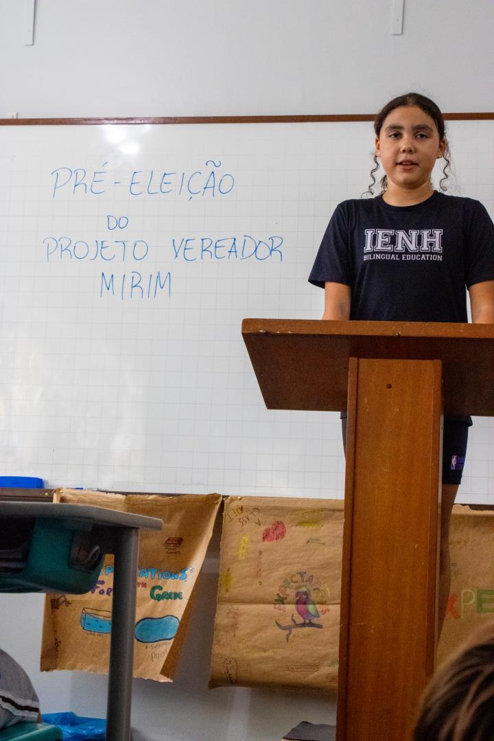 Os estudantes do Year 5 do Ensino Fundamental do Currículo Internacional Bilíngue da IENH – Unidades Pindorama e Oswaldo Cruz que participam do Projeto Vereador Mirim estão vivenciando uma importante etapa de preparação para as eleições. Engajados e cheios de ideias, alguns alunos se candidataram e já começaram a apresentar suas propostas às turmas, exercitando a argumentação, a escuta e o protagonismo.