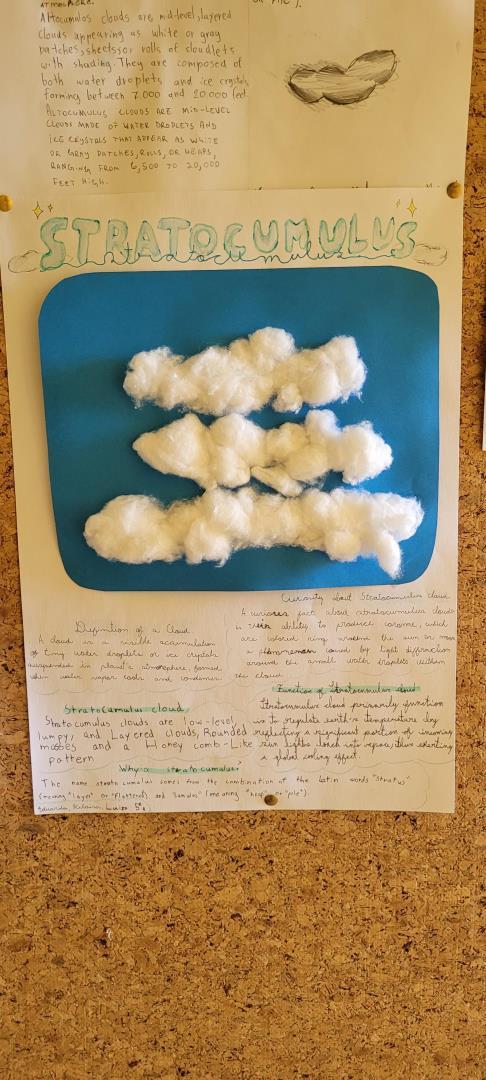 Como culminância do projeto, cada grupo produziu um pôster representando um tipo específico de nuvem, apresentando informações sobre sua formação, aparência e curiosidades. As apresentações em sala permitiram que todos compartilhassem suas descobertas e consolidassem o aprendizado de forma coletiva e dinâmica.