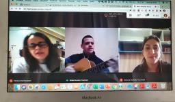A programação seguiu com a participação de dois professores do 7º ano que conversaram com o grupo. O professor de música também tocou uma canção com violão para os alunos. Ao final, os estudantes esclareceram suas dúvidas sobre as aulas e a rotina escolar no 7º ano.