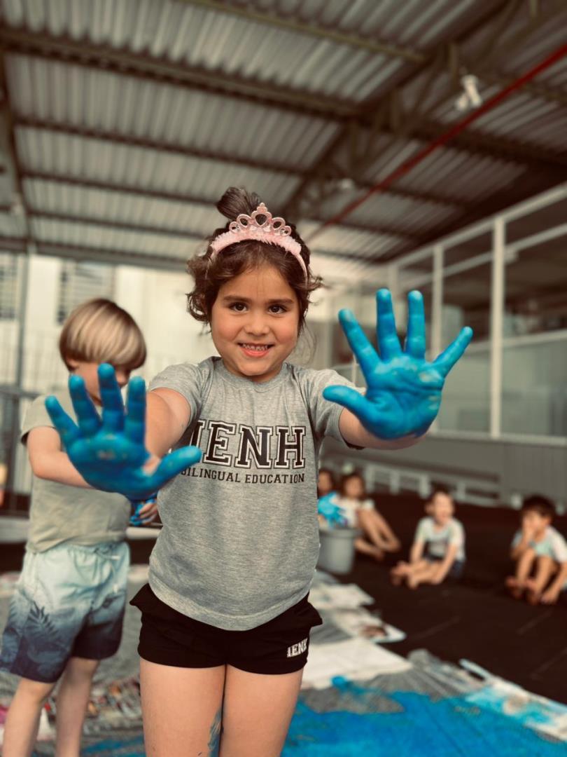 As crianças do Kindergarten 3A da Educação Infantil do Currículo Internacional Bilíngue da IENH - Unidade Oswaldo Cruz, vivenciaram, no dia 12 de novembro, uma atividade repleta de descobertas, movimento e imaginação durante a Wellbeing and Art Class. A proposta “Exploring the Big Blue Sea” teve como objetivo proporcionar uma experiência sensorial e corporal, estimulando a percepção visual, a coordenação motora ampla e a expressão criativa por meio da representação do mar.