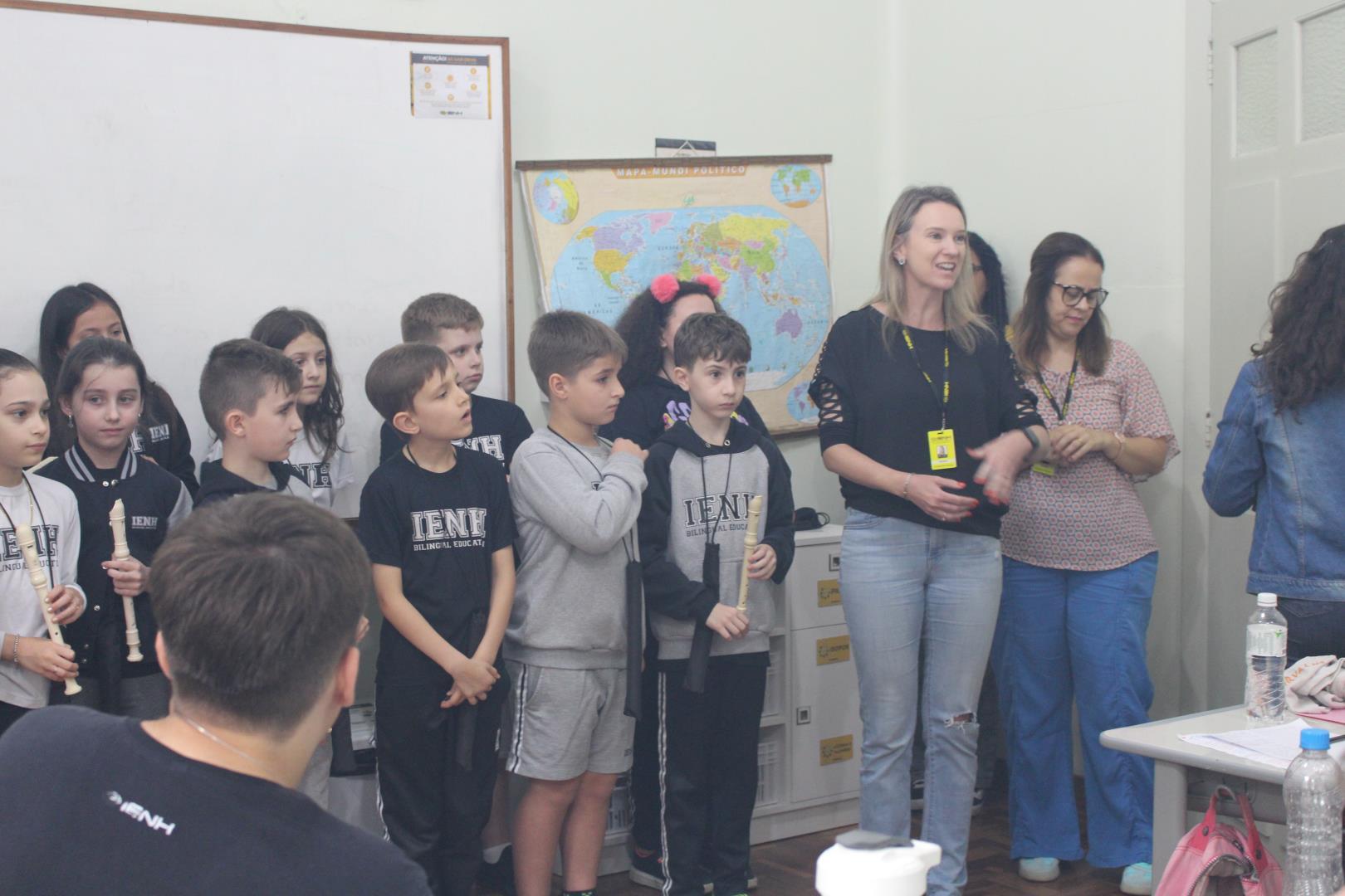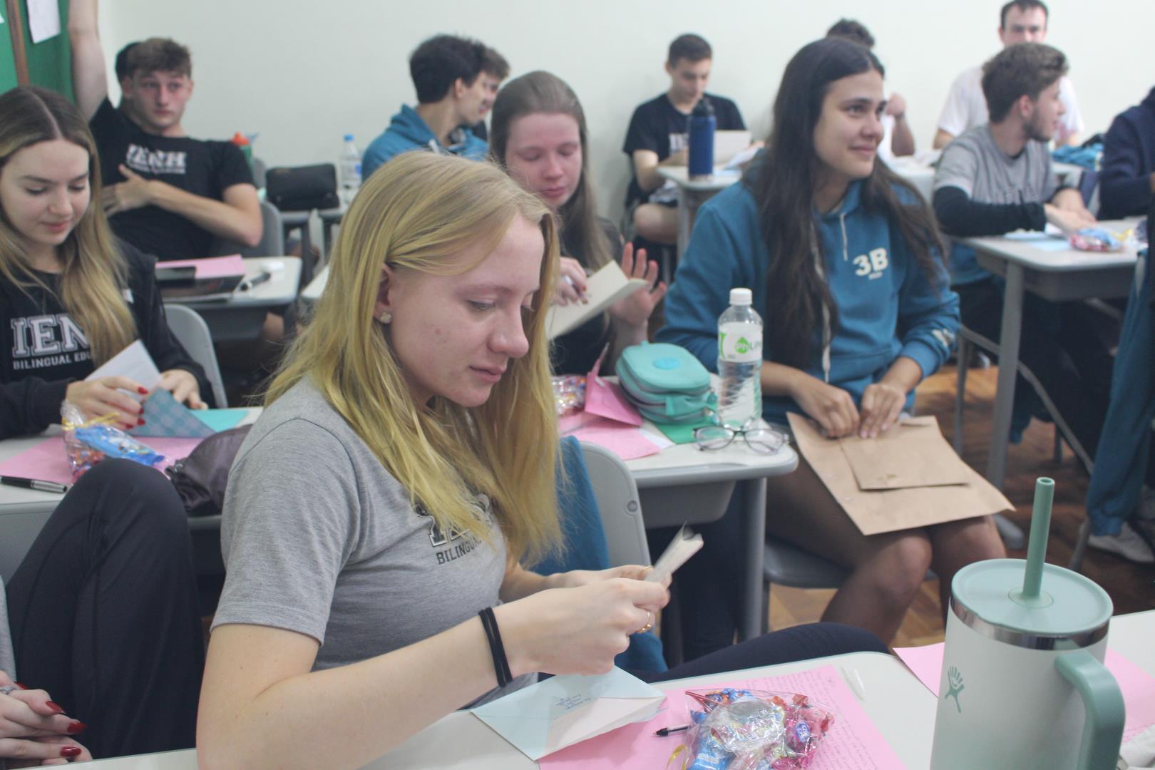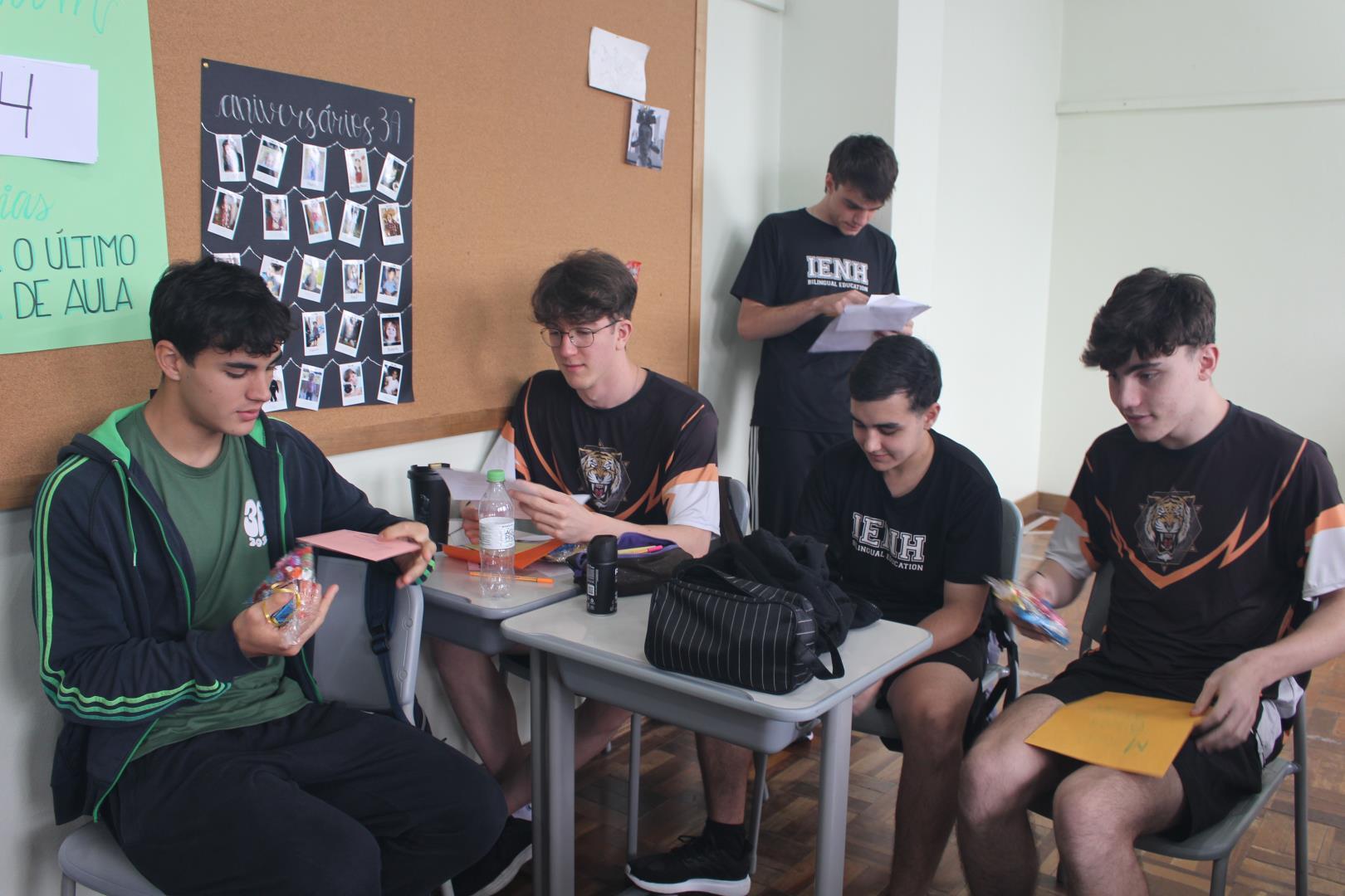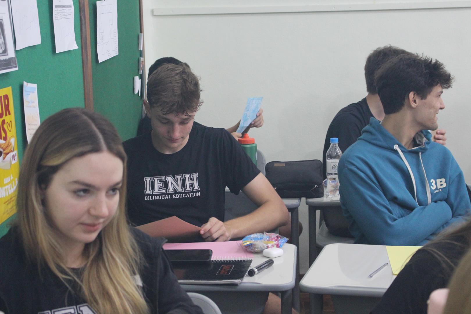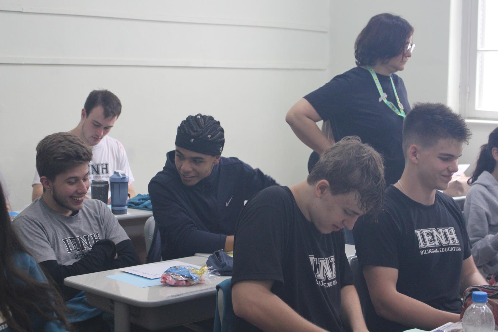 A poucos dias do encerramento das aulas, os estudantes das turmas de 3ª série do Ensino Médio da IENH – Unidade Fundação Evangélica receberam uma surpresa especial. Os estudantes do Year 3 do Ensino Fundamental do Currículo Internacional Bilíngue da IENH – Unidade Pindorama visitaram as salas para uma homenagem repleta de afeto e simbolismo, celebrando o encerramento de um ciclo importante na trajetória escolar dos formandos.