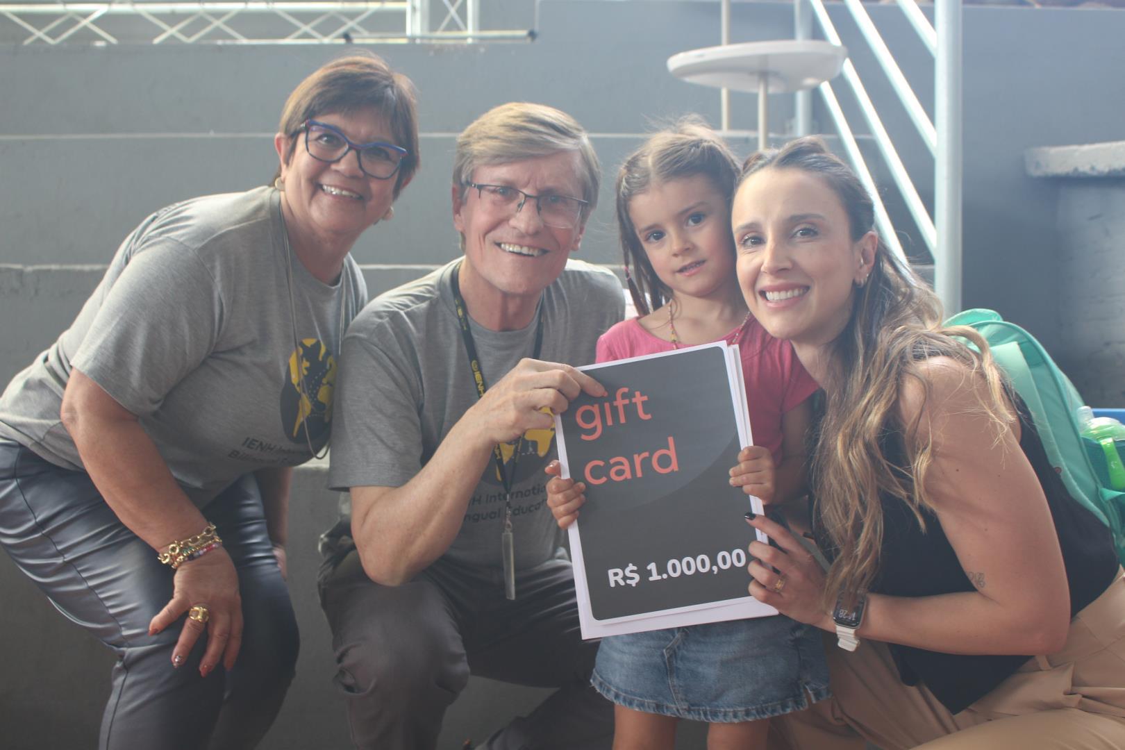 O sorteio de brindes marcou o dia por ser um dos momentos mais esperados do evento, com destaque para os prêmios da Campanha de Rematrículas 2026, sorteados entre as famílias que realizaram a rematrícula até 24 de setembro. Também foram sorteados prêmios especiais: uma bicicleta e um Labubu, oferecidos pela Nativu’s, além de 3 vales-compra de R$ 500 cada da Loja de Uniformes Demétrio.