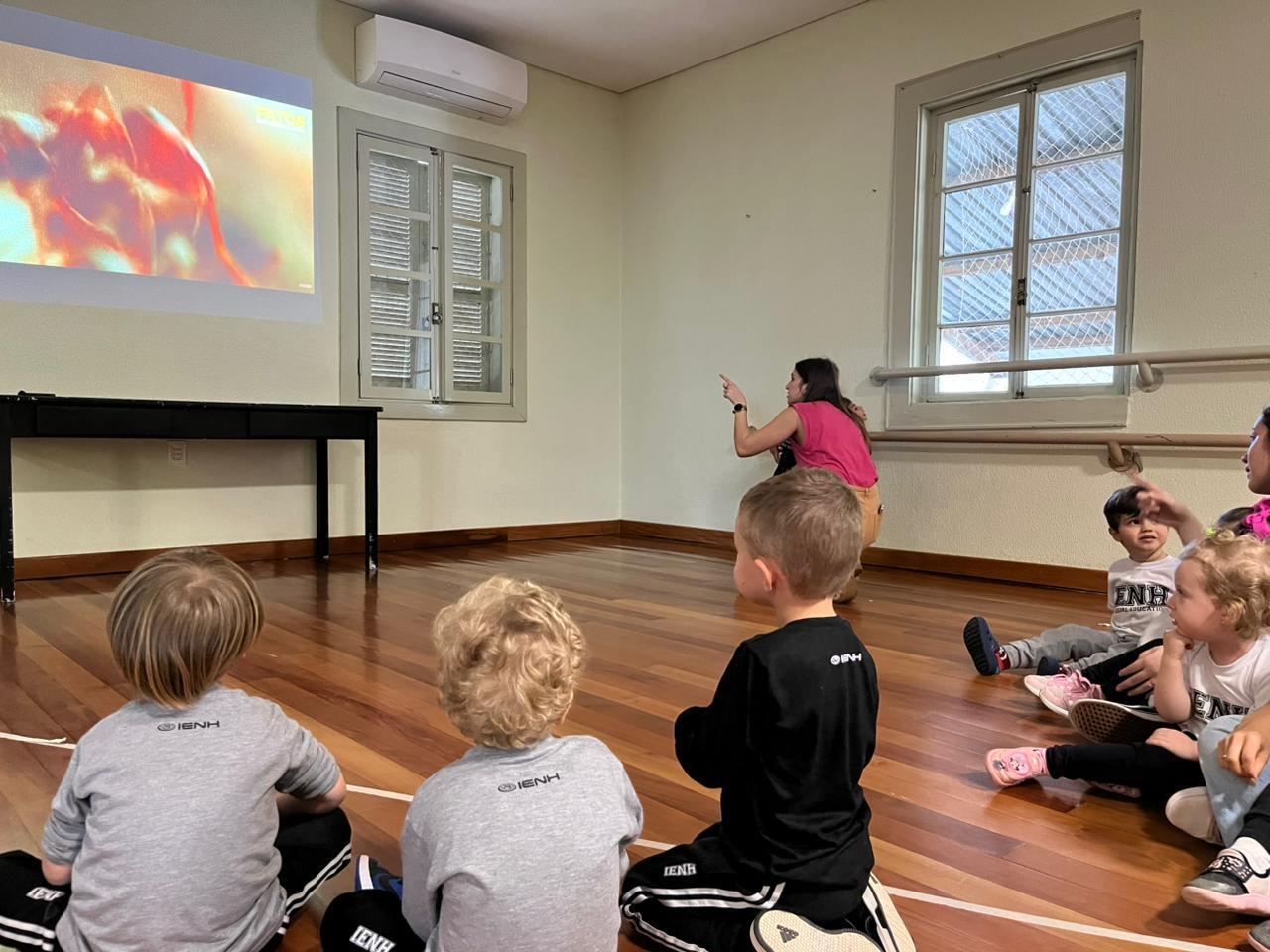 As atividades foram conduzidas pelas professoras Caroline Bender, Amanda Siebel e pela teacher Amanda Escobar.