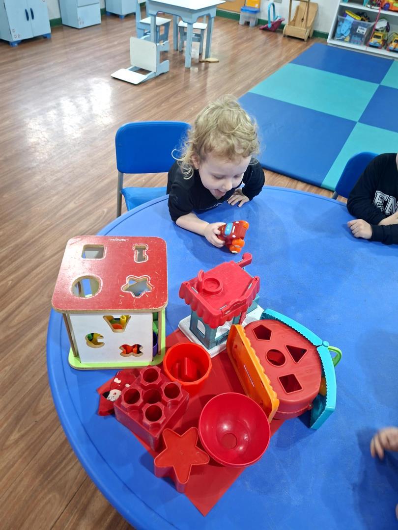 Durante as propostas, os pequenos exploraram o universo das rimas, brincaram com sons e palavras, e participaram de momentos especiais de “hora do conto” com fantoches, tornando as histórias ainda mais envolventes. Também realizaram atividades práticas, como selecionar objetos nas cores amarelo e vermelho e utilizar tintas e carrinhos para expressar suas percepções das histórias, transformando o aprendizado em uma experiência sensorial e divertida.