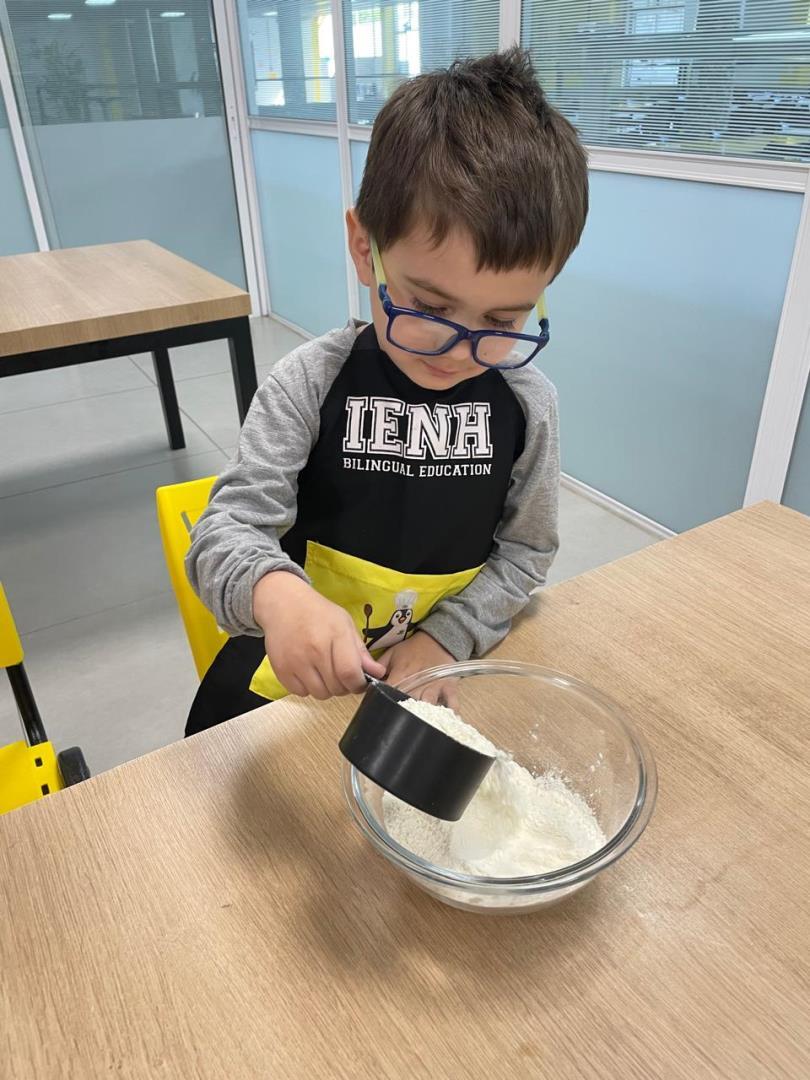 O Kindergarten 3B da Educação Infantil do Currículo Internacional Bilíngue da IENH - Unidade Oswaldo Cruz realizou uma atividade culinária em que as crianças prepararam um delicioso pãozinho caseiro com um detalhe muito especial: o pão se transformou em tartarugas. A atividade ocorreu no dia 26 de setembro, na Cozinha Escola, e foi proposta pela professora Cláudia Nis.