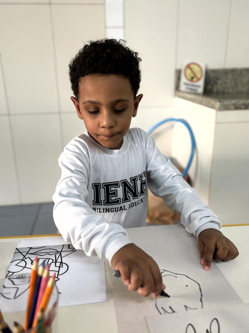 Na segunda quinzena de outubro, as crianças do Kindergarten 4C da Educação Infantil do Currículo Internacional Bilíngue da IENH - Unidade Pindorama participaram da atividade “Myself in Shapes – Exploring Identity through Geometric Forms”, uma proposta que uniu arte, criatividade e autoconhecimento.