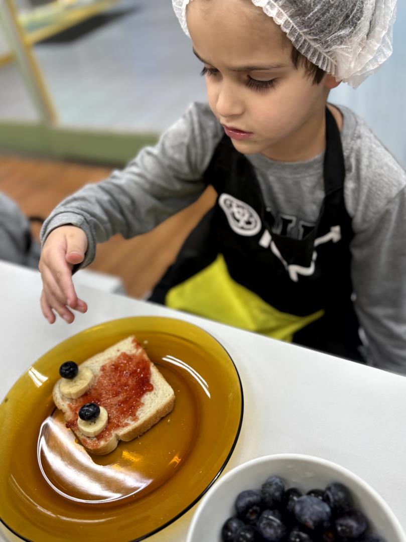 Durante a Cooking Class, realizada dia 15 de setembro, as crianças do Kindergarten 4C da Educação Infantil do Currículo Internacional Bilíngue da IENH - Unidade Pindorama participaram da proposta Funny Face Toasts – Exploring the Body Parts. A atividade teve como objetivo integrar o aprendizado do inglês ao cotidiano das crianças, por meio do contato com alimentos, da criatividade e da exploração do vocabulário relacionado às partes do corpo.