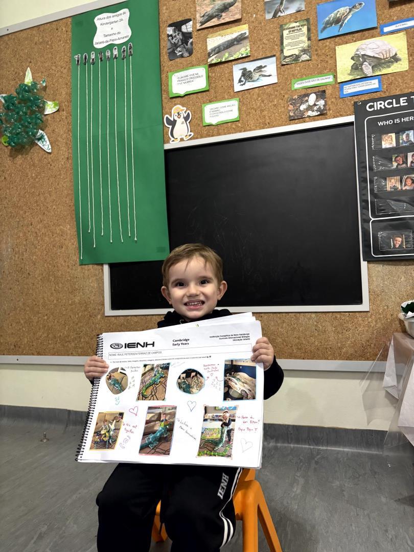 As crianças do Kindergarten 2A da Educação Infantil do Currículo Internacional Bilíngue da IENH – Unidade Oswaldo Cruz embarcaram em uma experiência repleta de imaginação, criatividade e vínculos afetivos. Com o objetivo de estimular a curiosidade, o gosto pela pesquisa e o envolvimento das famílias nas propostas trabalhadas em sala de aula, a turma, acompanhada pela professora Eduarda Fragoso e pela teacher Thami Riva, desenvolveu o projeto “Meu primeiro tema de casa!”.