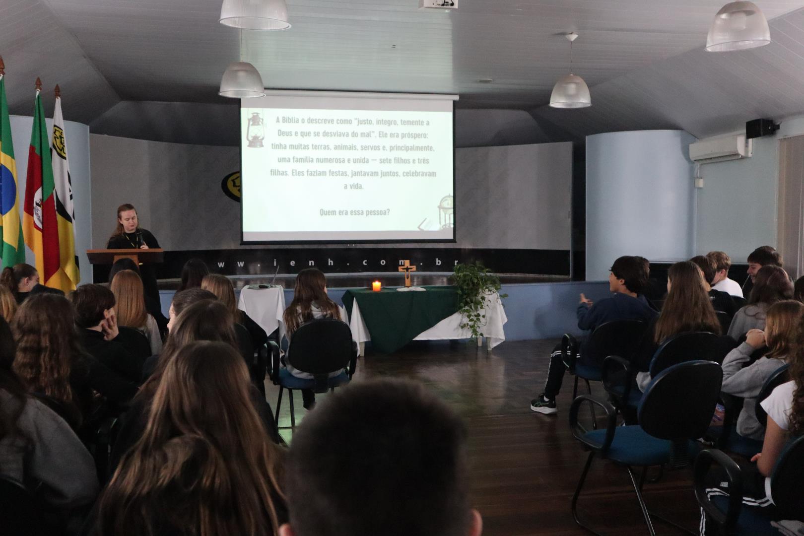 O encontro foi realizado em diferentes espaços: os estudantes da IENH - Unidade Pindorama se reuniram na Igreja Três Reis Magos e na sala Multiuso, os da Unidade Oswaldo Cruz, na Igreja da Ascensão e na sala interativa, e os estudantes da Unidade Fundação Evangélica, na sala de Conferências. Cada espaço foi cuidadosamente preparado para acolher os grupos em um ambiente de espiritualidade, escuta e reflexão.