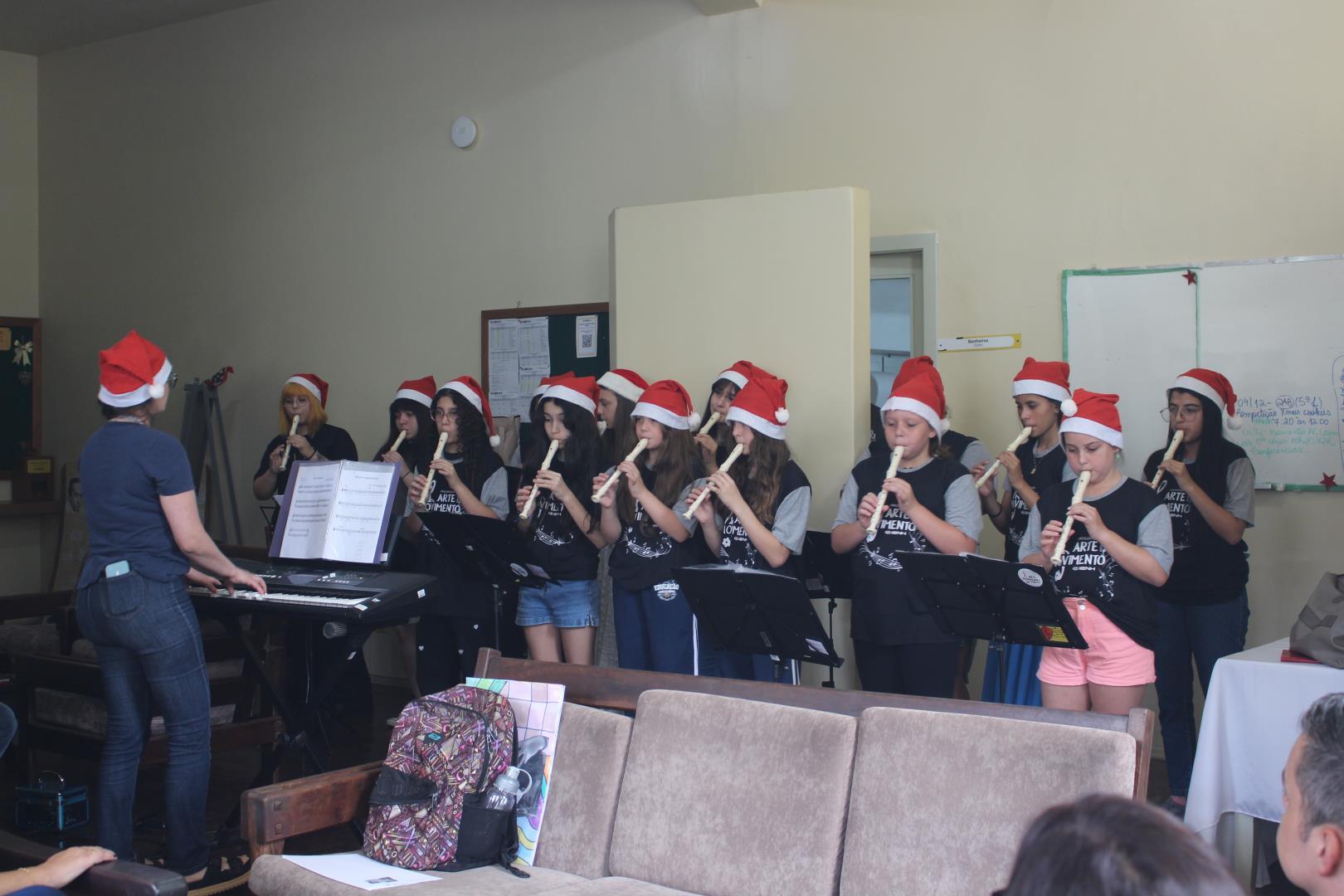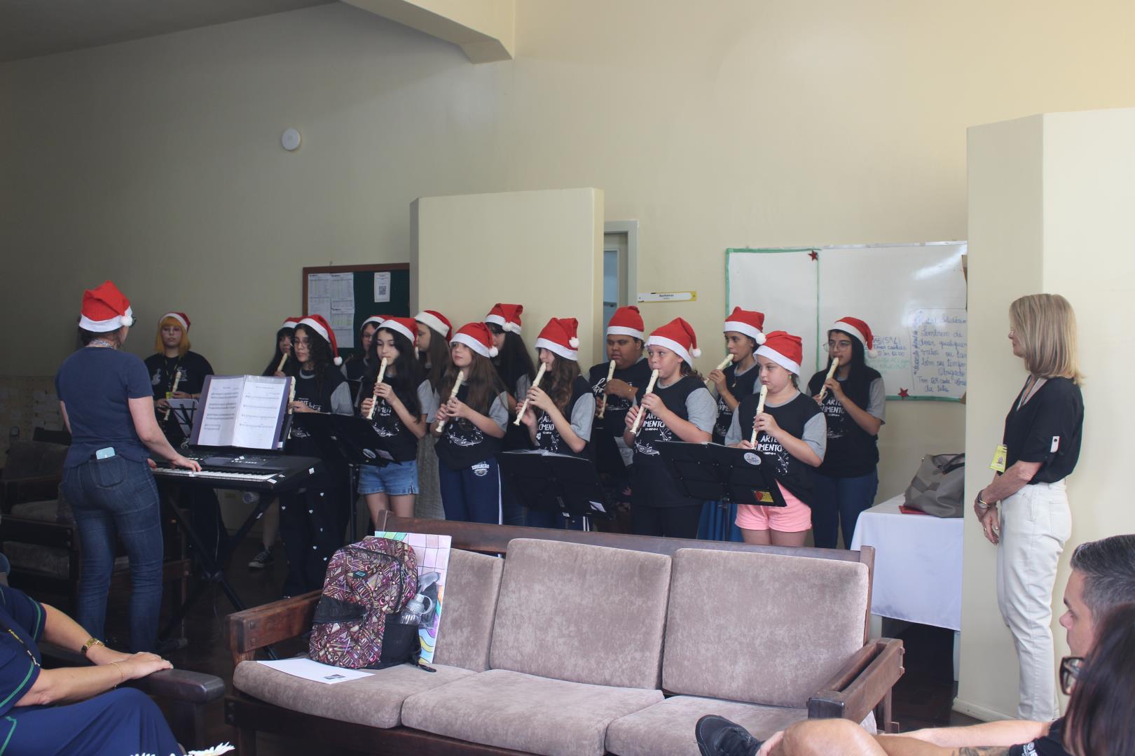 O projeto é coordenado pela responsável pelo Programa Socioambiental da IENH, Isabel Lizakoski, e a apresentação foi conduzida pela professora de Música Daniella Nogueira. Juntas, elas proporcionaram um momento de emoção, leveza e conexão, mostrando também o trabalho que foi desenvolvido no projeto ao longo do ano.