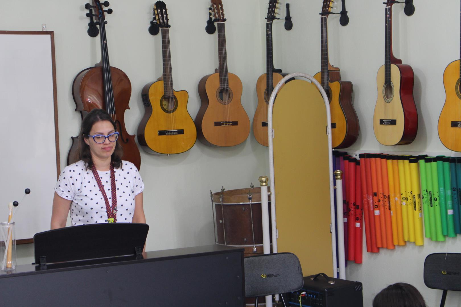 Na sala do programa, oficinas musicais com experimentação dos instrumentos foram proporcionadas às novas integrantes. Elas contaram com o auxílio das demais alunas do projeto e dos professores. No momento, Isabel também falou sobre a reunião que ocorrerá em abril, em que workshops serão promovidos aos responsáveis das adolescentes.