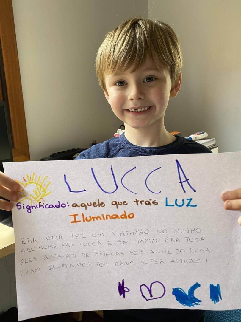 Seguindo as vivências sobre diferentes histórias no projeto de estudos "Contos e encantos: explorando o mundo da literatura infantil”, a turma do Nível 4A da Educação Infantil da IENH - Unidade Pindorama explorou a escrita do nome próprio para a produção de pequenas histórias e versos.