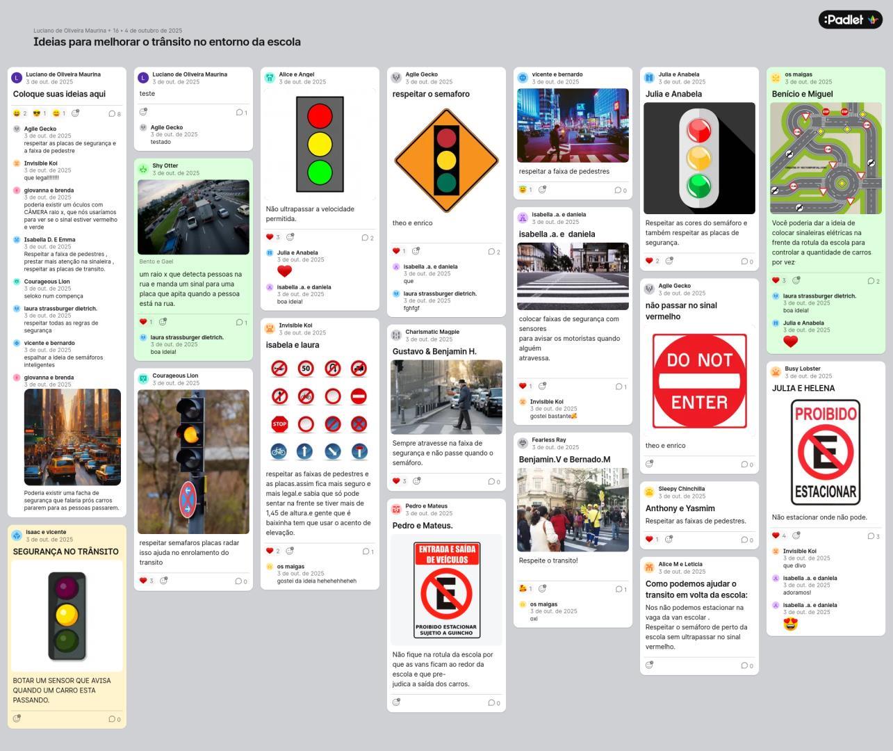 Na última etapa, denominada Brainwriting, os grupos registraram suas propostas criativas para melhorar a mobilidade urbana, utilizando recursos digitais e materiais gráficos.