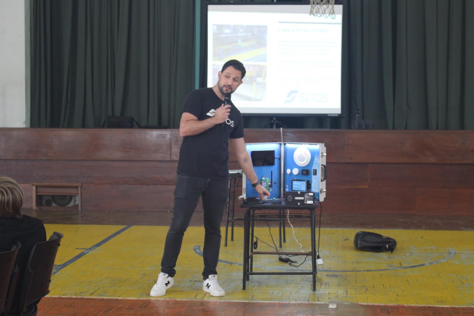 Realizada no ginásio da Unidade Pindorama, a atividade contou com três etapas dinâmicas. Primeiro, os estudantes participaram de um talk conduzido por Diego Schlindwein, CEO ( Chief Executive Officer) da Sirros IOT, uma startup de Indústria 4.0 eleita por dois anos consecutivos como a melhor startup de IOT do Brasil e tem no seu portfólio grandes empresas como clientes (Randon, ArcelorMittal, Tigre, dentre tantas outras). Além disso, o Diego apresentou conceitos e exemplos, mas também trouxe dispositivos de hardware IOT para demonstrar aos alunos.
