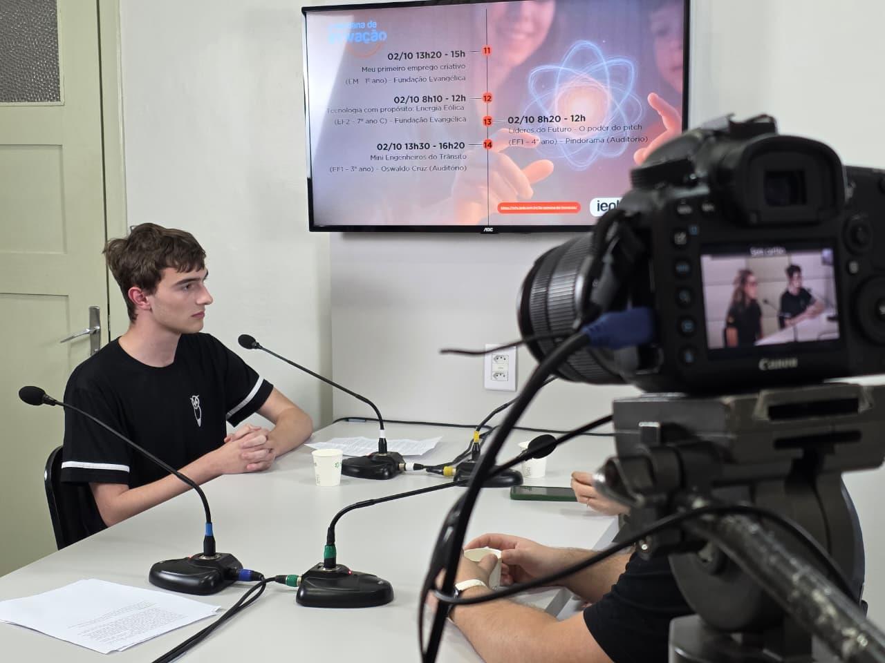 Durante a tarde do dia 02 de outubro, os estudantes do Ensino Médio da IENH - Unidade Fundação Evangélica e integrantes do Grêmio Estudantil Castro Alves - GECA assumiram o papel de protagonistas na condução dos Mini-Podcasts da Semana de Inovação, atividade que integrou a programação da 3ª edição do evento.