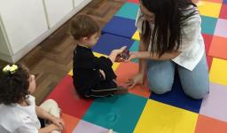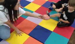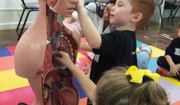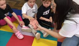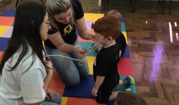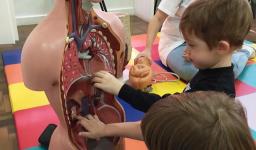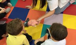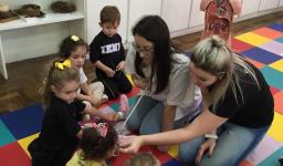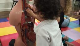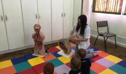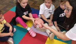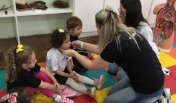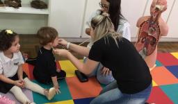 Junto com a Professora Cláudia Nis, a Professora Gabriele Zvir acompanhou o momento, em que os estudantes puderam explorar e manusear um coração, observando suas características e relatando os sentimentos estudados até então. Depois, em outro momento, com o uso do estetoscópio, puderam ouvir suas batidas. Ainda conheceram o órgão do cérebro, que também é responsável pelas emoções e sentimentos.