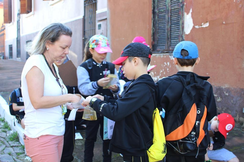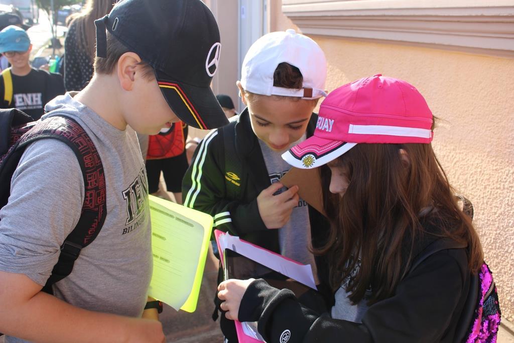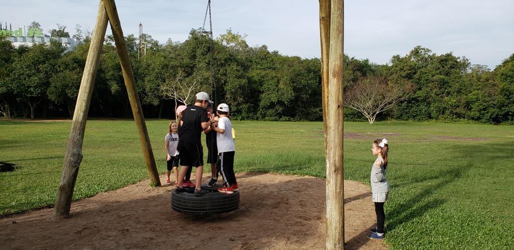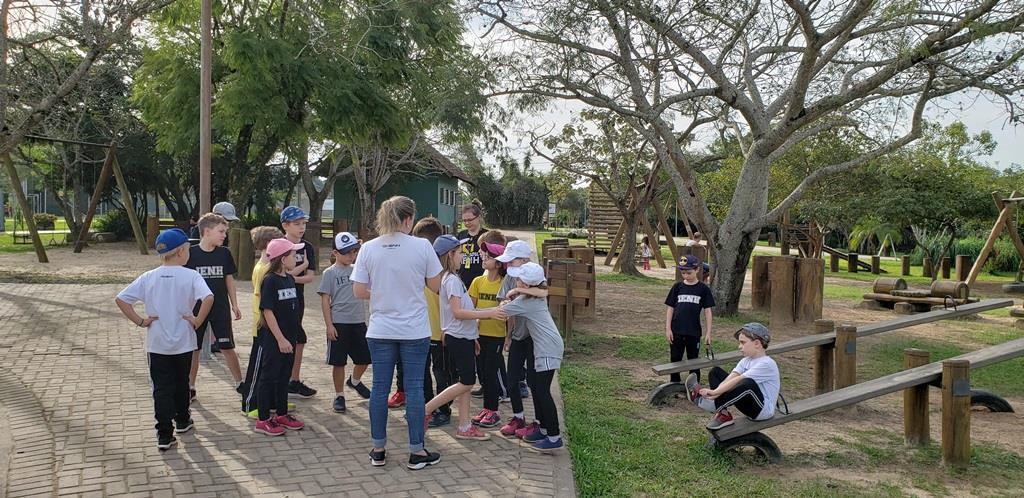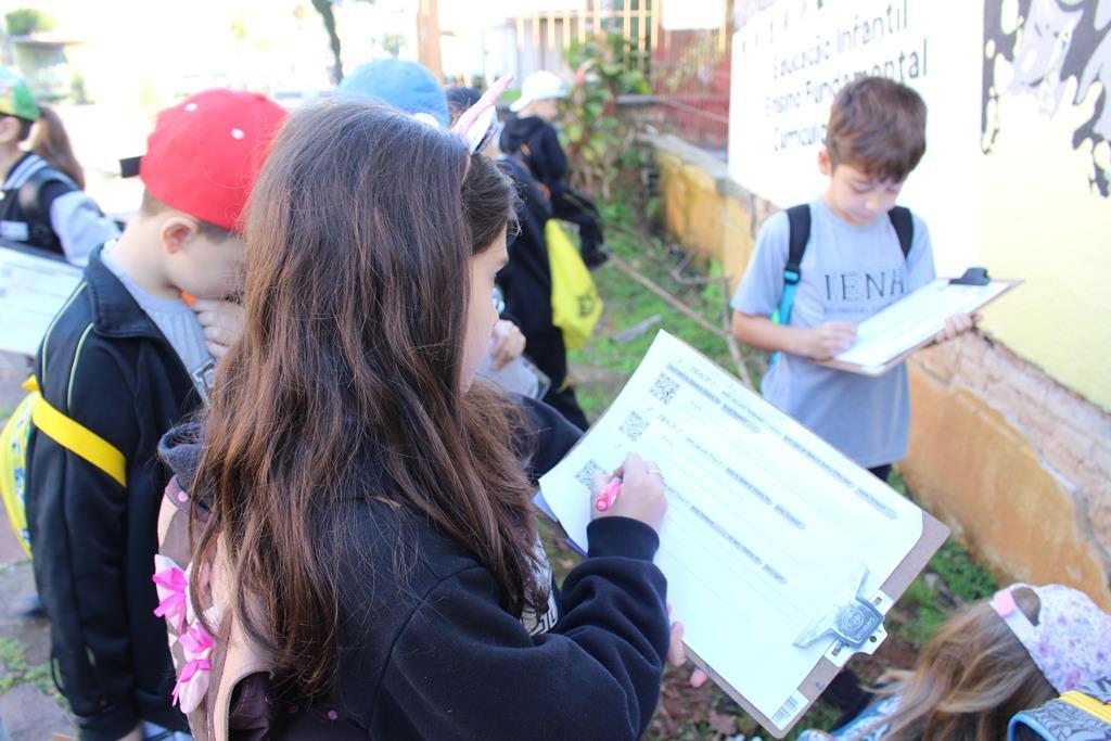 Cada um recebeu um “kit de sobrevivência” surpresa, com camiseta, garrafinha de água, lanterna e repelente e foram divididos em equipes, acompanhados das professoras Cristiane Ely Lemke, Carolina Fleck, Letícia Schmitz de Almeida, Rosani Ramm e Suzane Mesquita para a realização dos desafios.