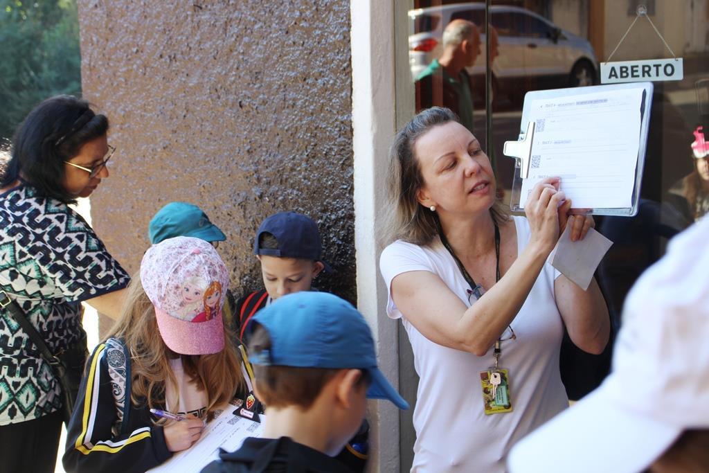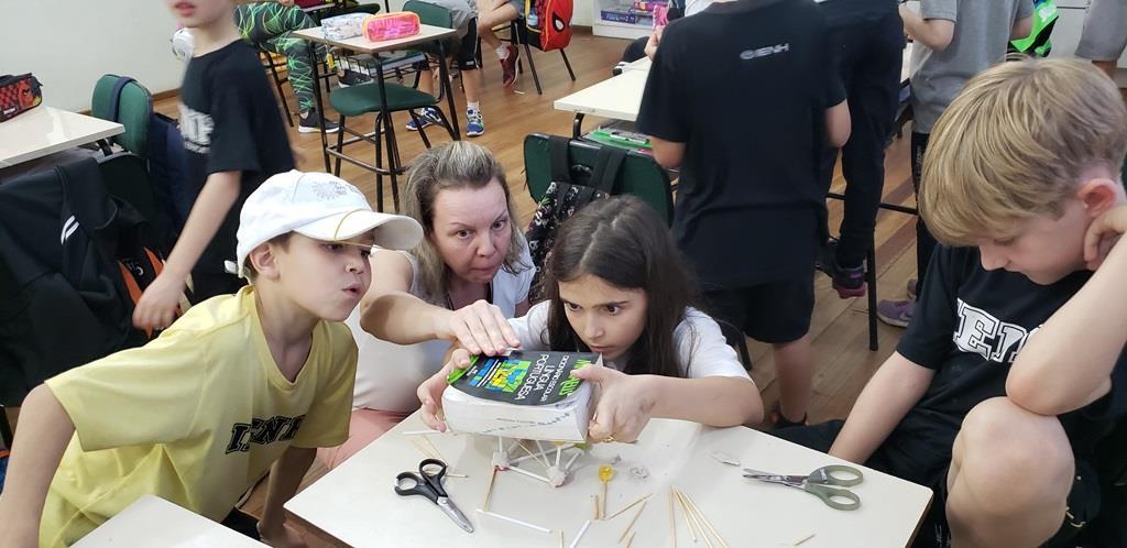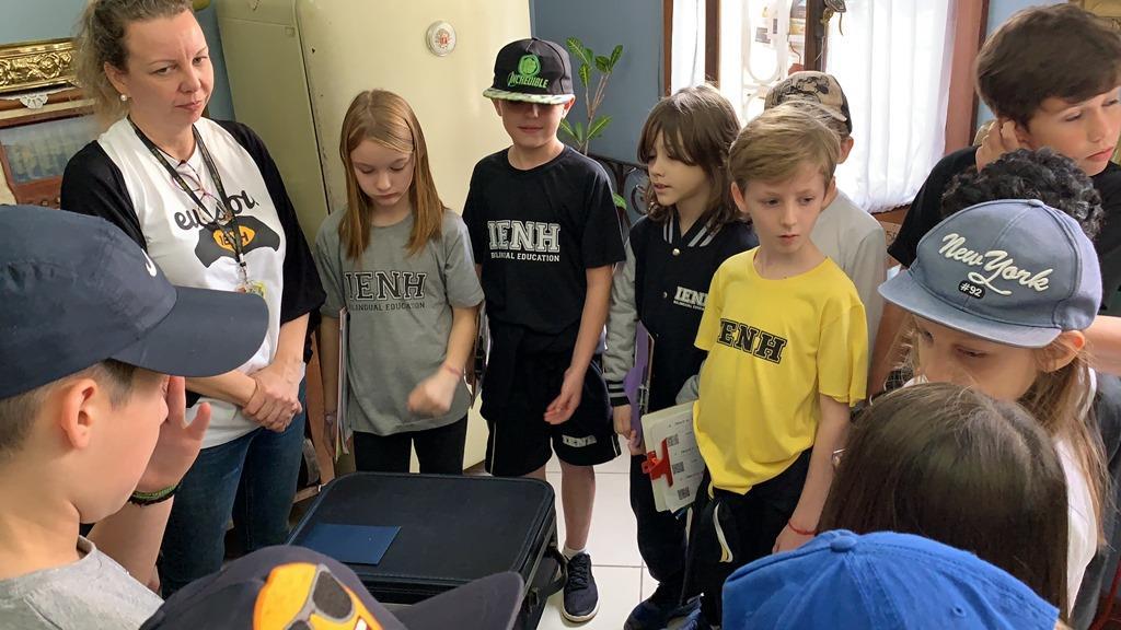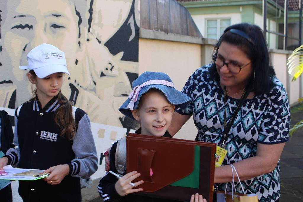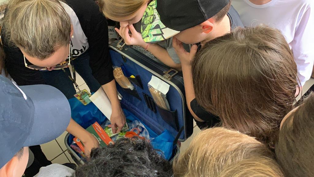 Cada um recebeu um “kit de sobrevivência” surpresa, com camiseta, garrafinha de água, lanterna e repelente e foram divididos em equipes, acompanhados das professoras Cristiane Ely Lemke, Carolina Fleck, Letícia Schmitz de Almeida, Rosani Ramm e Suzane Mesquita para a realização dos desafios.