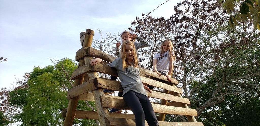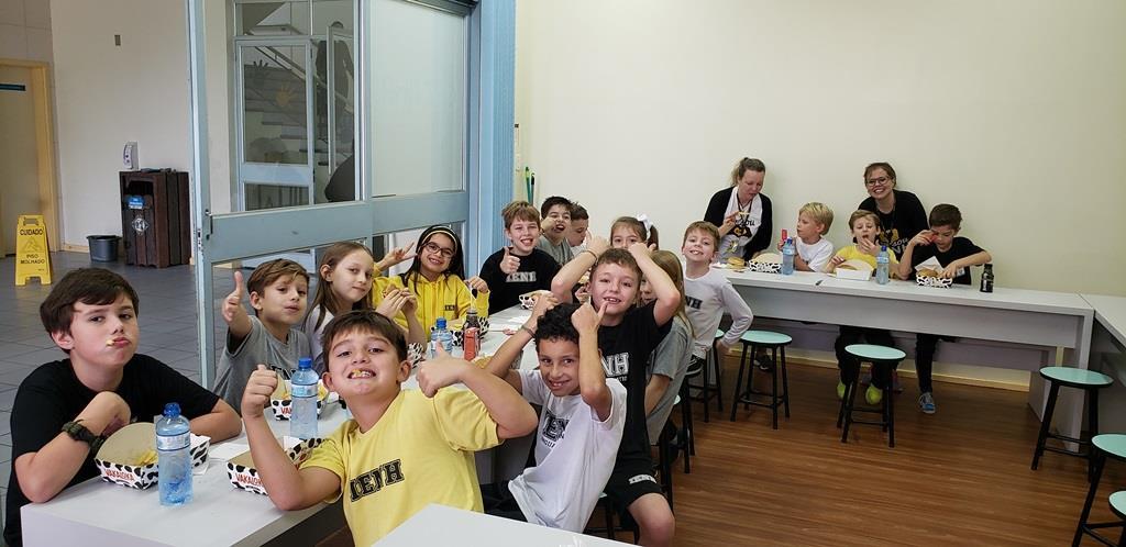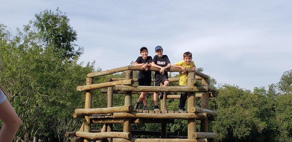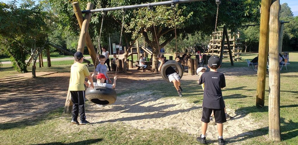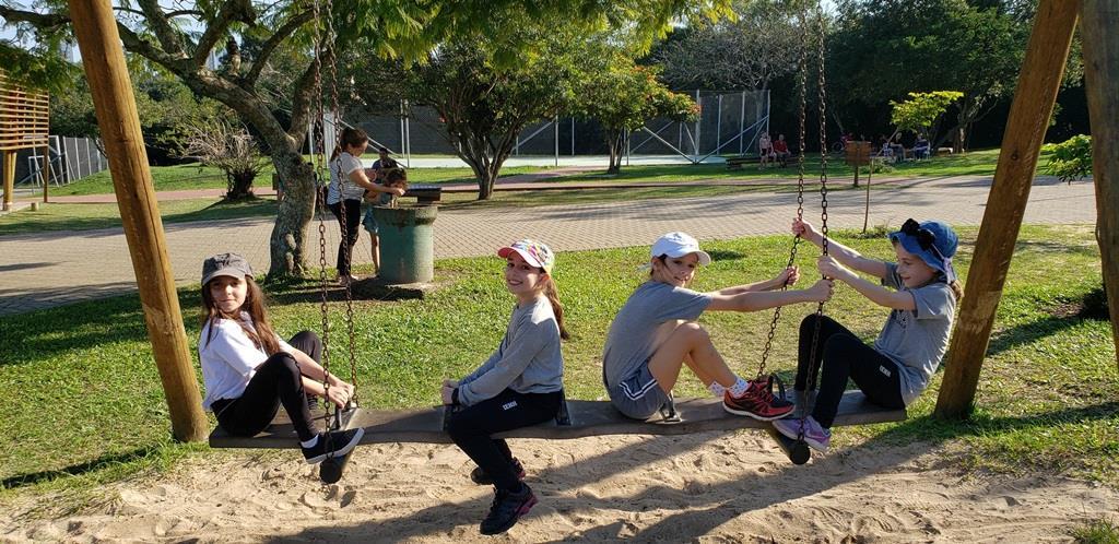 As atividades continuaram pela manhã, após um delicioso café. A professora Suzane ficou responsável por desafiar os alunos com atividades físicas variadas.
