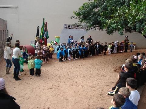 Com a apresentação de alunos da Educação Infantil da Unidade, o tema foi a preservação dos bens naturais. Cada turma fez uma apresentação individual representando um elemento.
