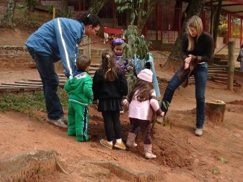 Após a atividade, cada turma plantou a sua muda, com o auxílio dos Monitores Ecológicos da Unidade.
