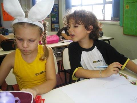 No dia 1º de abril, os alunos participaram da festa “Entre chocolates e cenouras”, onde foram em busca de seus ninhos, seguindo as pistas deixadas pelo coelho. Em seguida registraram, em duplas, os mapas do caminho percorrido para encontrar os chocolates deixados pelo coelho.
