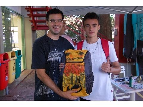 As criações vencedoras tiveram suas mochilas grafitadas na hora, em uma tenda montada na área coberta, próximo a Lancheria. Os alunos puderam acompanhar a atividade ao som de Hip-Hop.