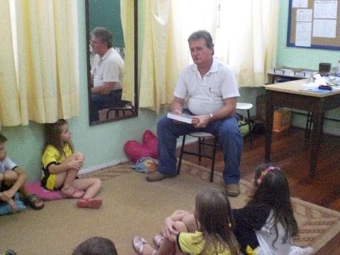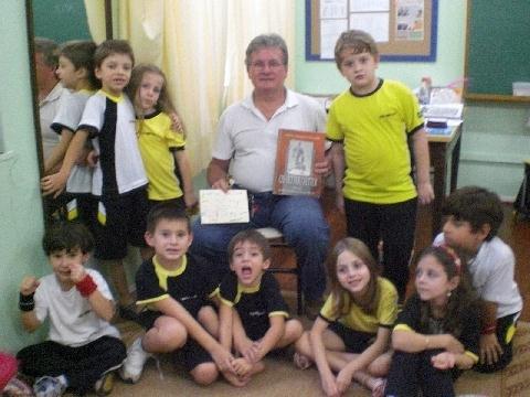 Já no dia 28 de abril, o avô do aluno Marcos Vinícius Vetter, também esteve na escola, contando sobre a história da sua família, mostrando um livro que foi organizado com toda a história de seus antepassados, com fotos, mapas e ilustrações, que chamaram a atenção dos alunos. Ele falou da primeira fábrica de calçado, construída